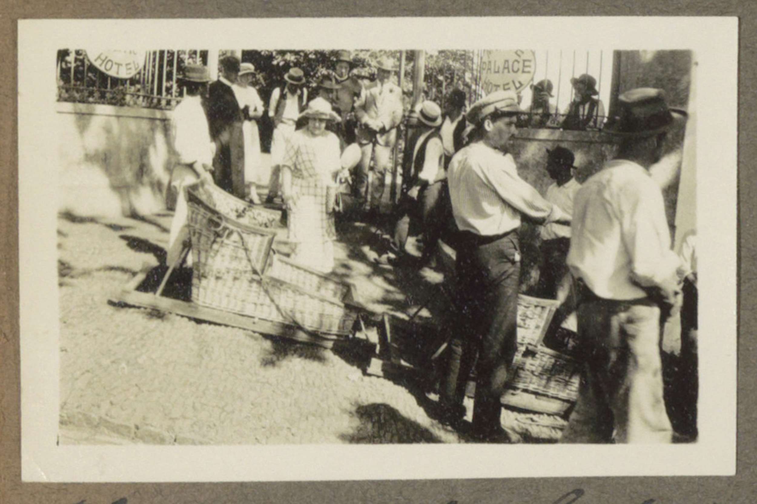 Gezelschap bij toesledes (sleepkoetsen) op Madeira