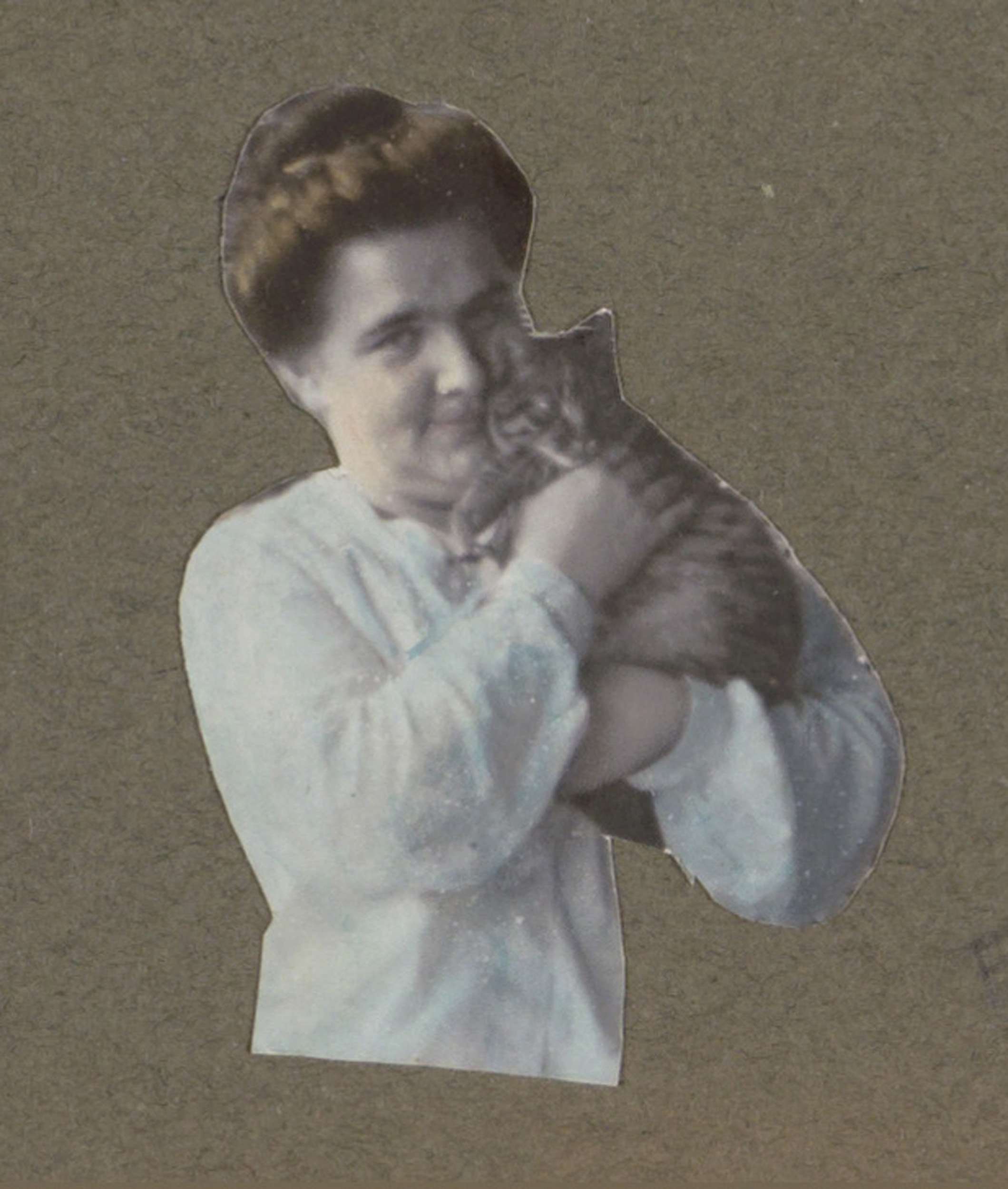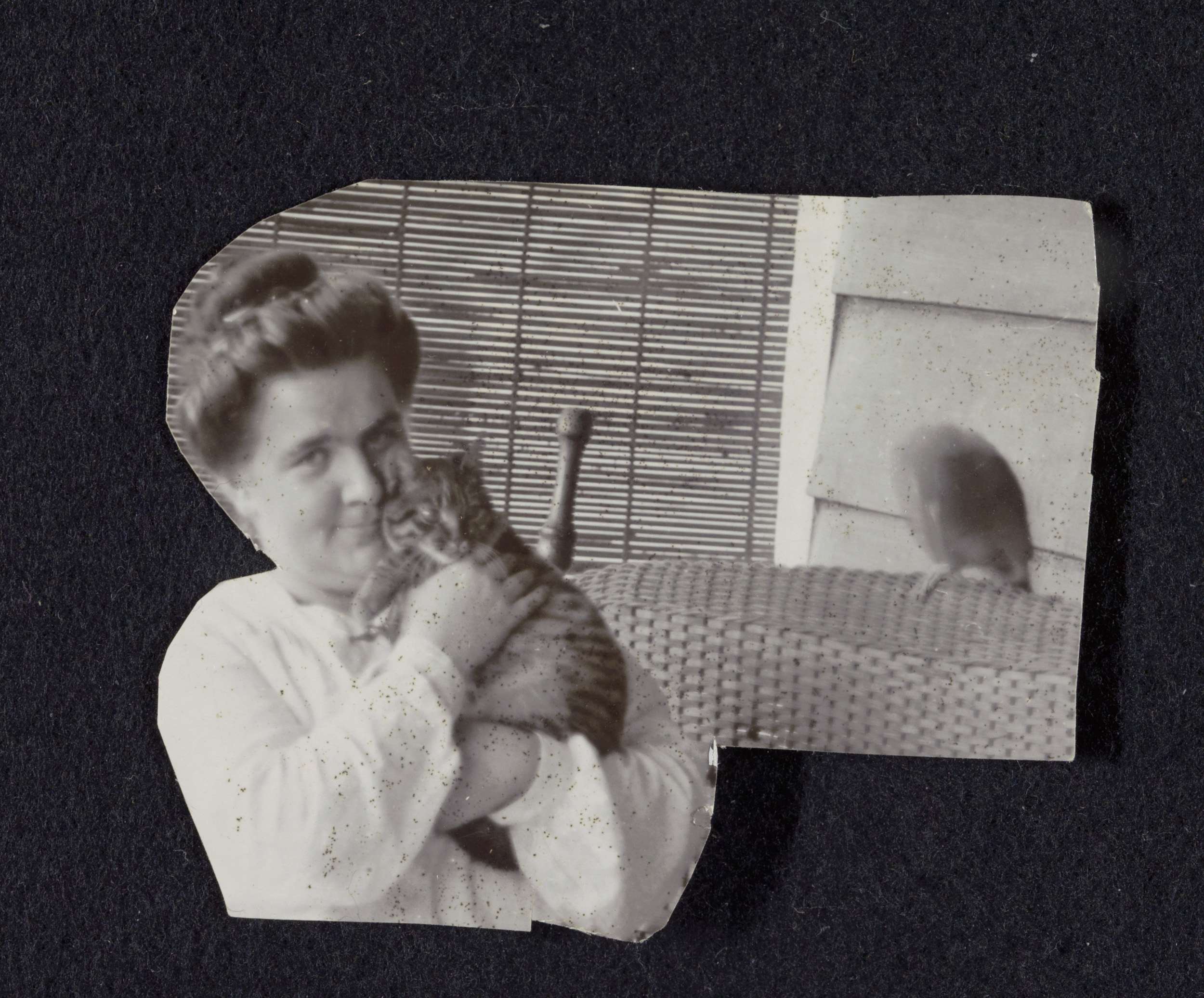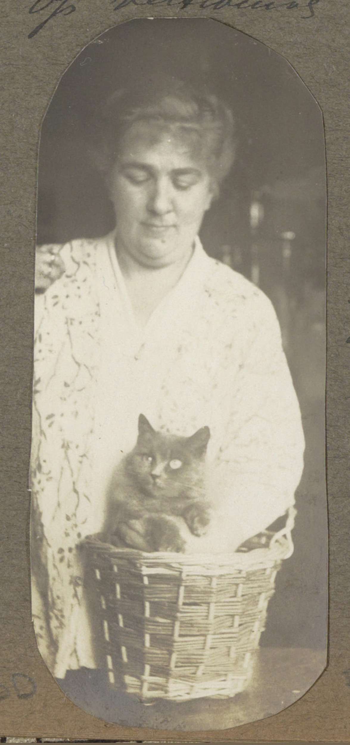 Vrouw met kat in haar armen, mogelijk in Paramaribo ...