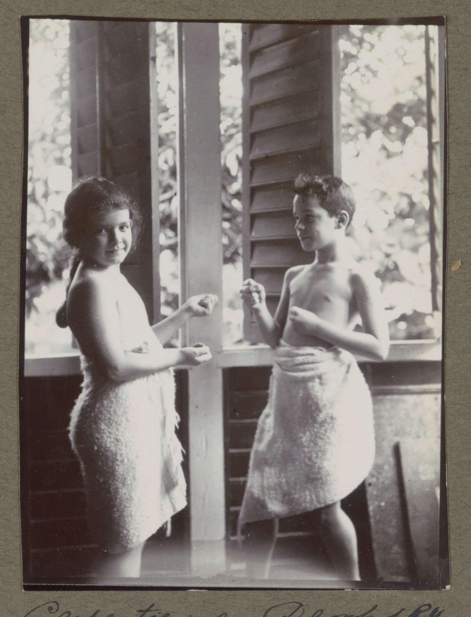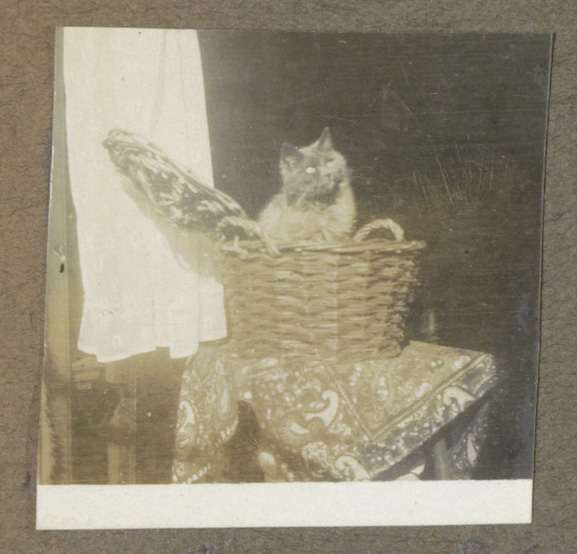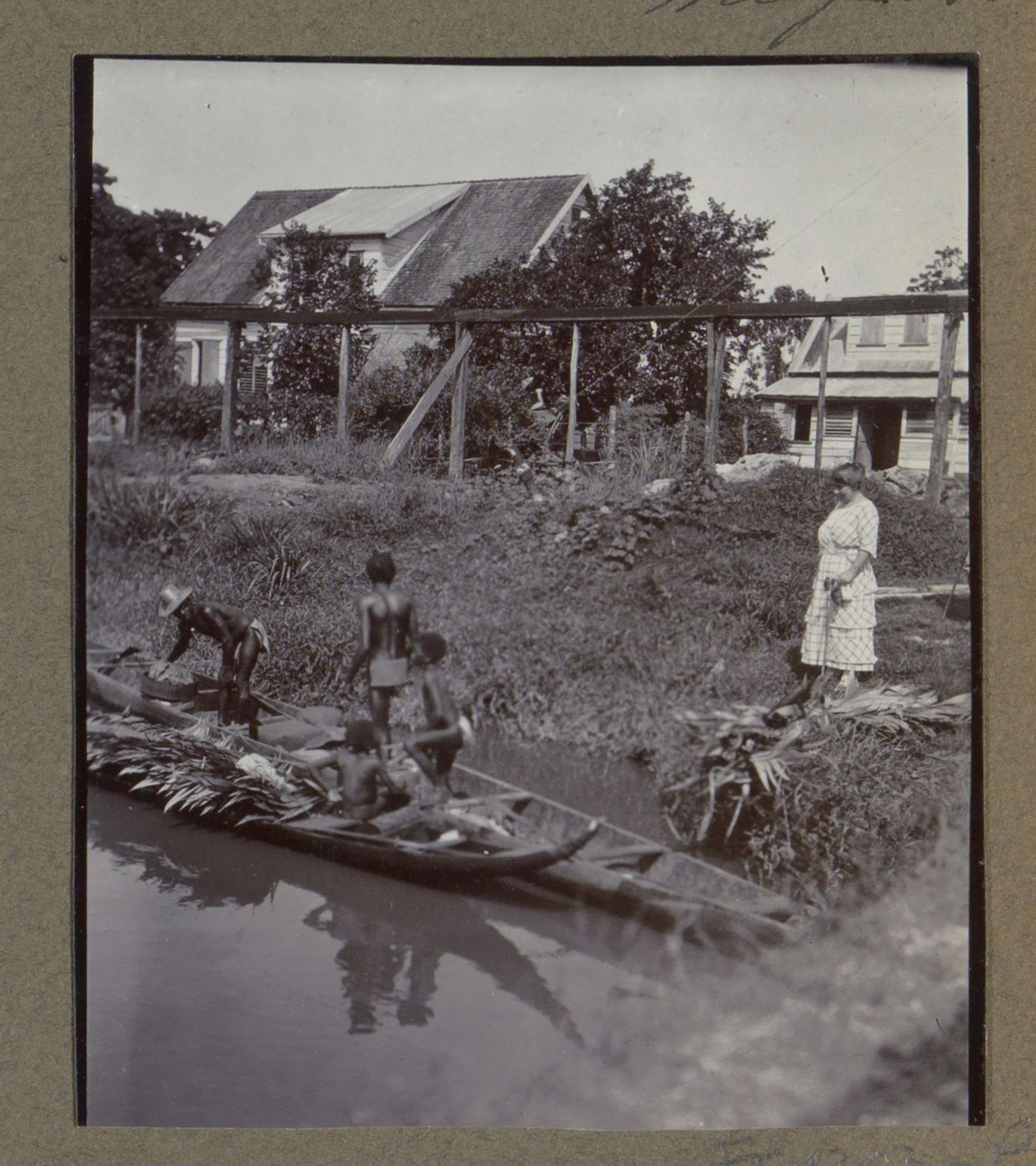 Vrouw met kat in haar armen, mogelijk in Paramaribo ...