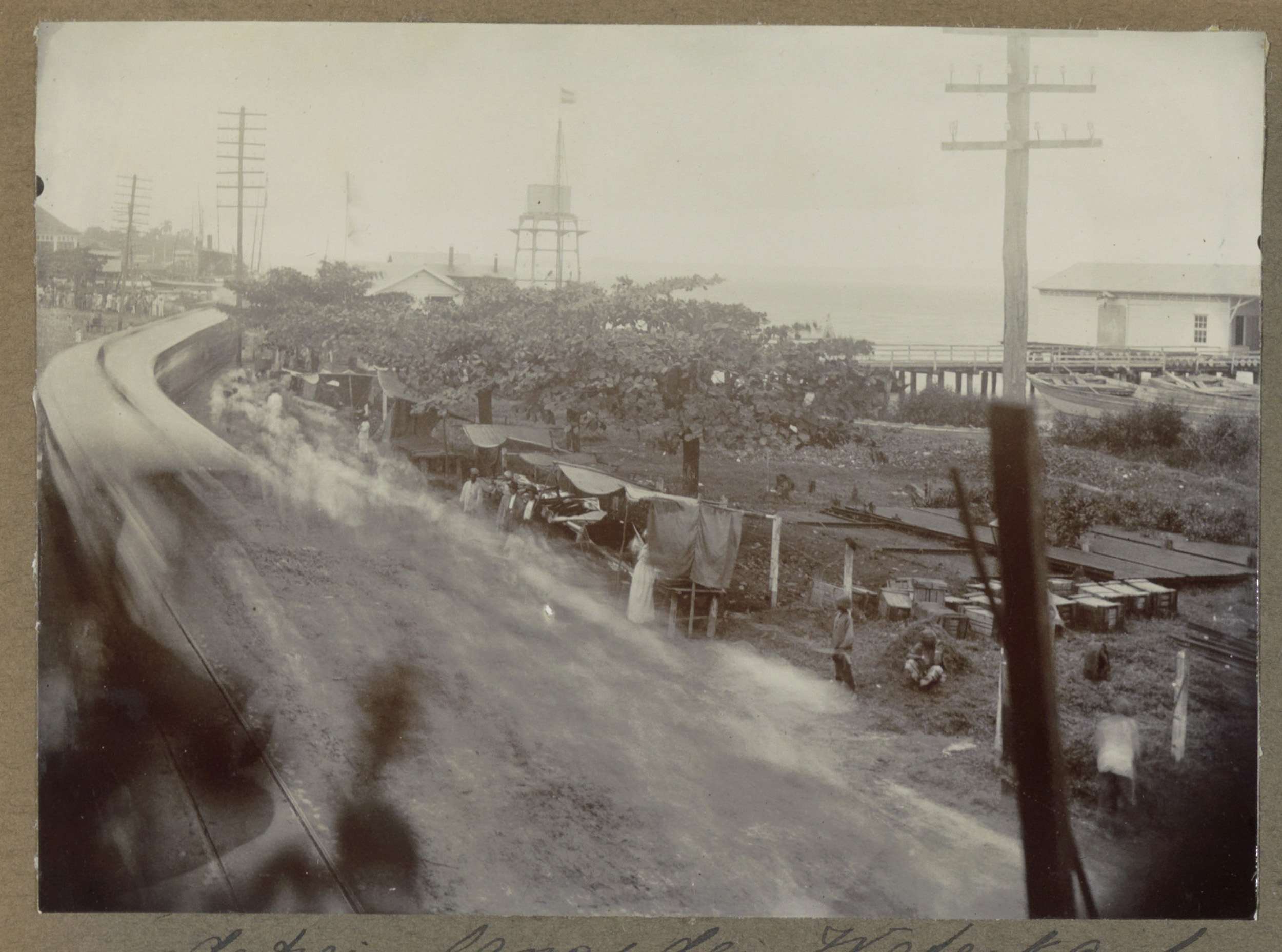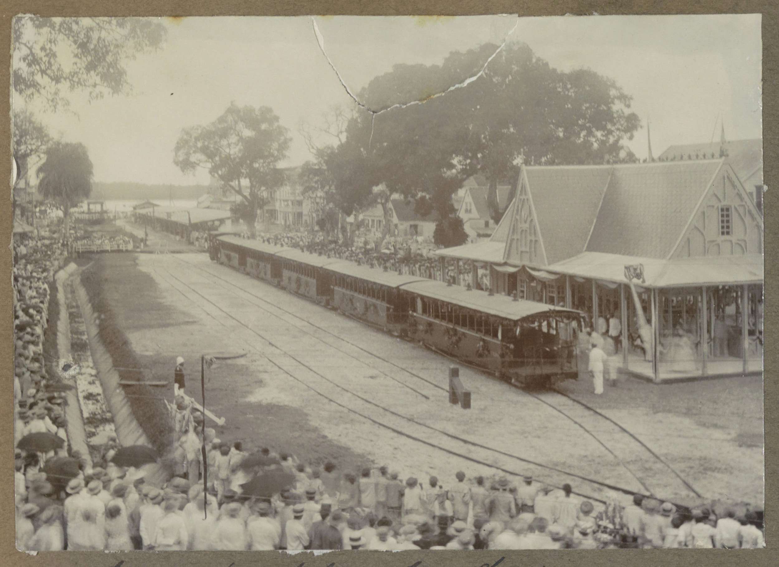 Gezicht op treinstel en publiek op het Vaillantsplei...