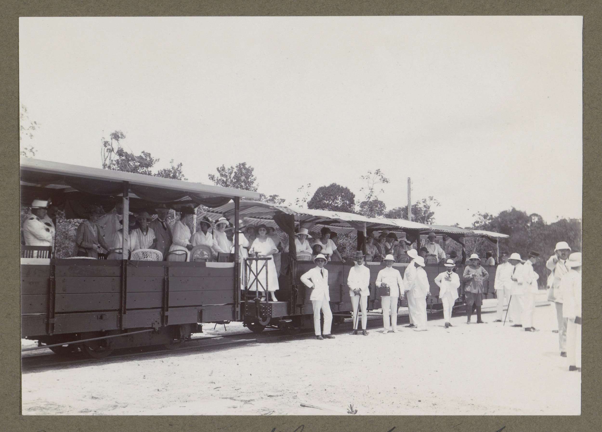 Gezelschap in een treincoupé op de Lawaspoorlijn in ...