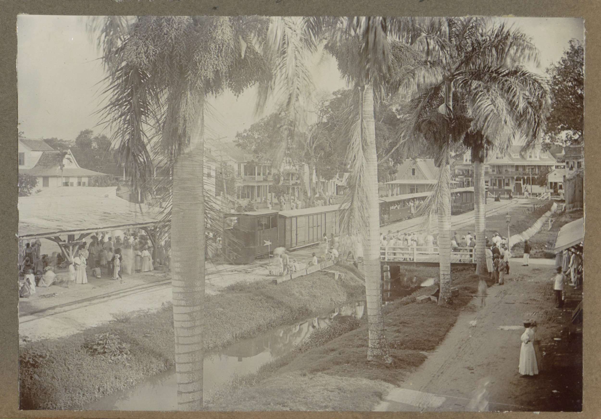 Erepoort in de Saramaccastraat te Paramaribo, opgeri...