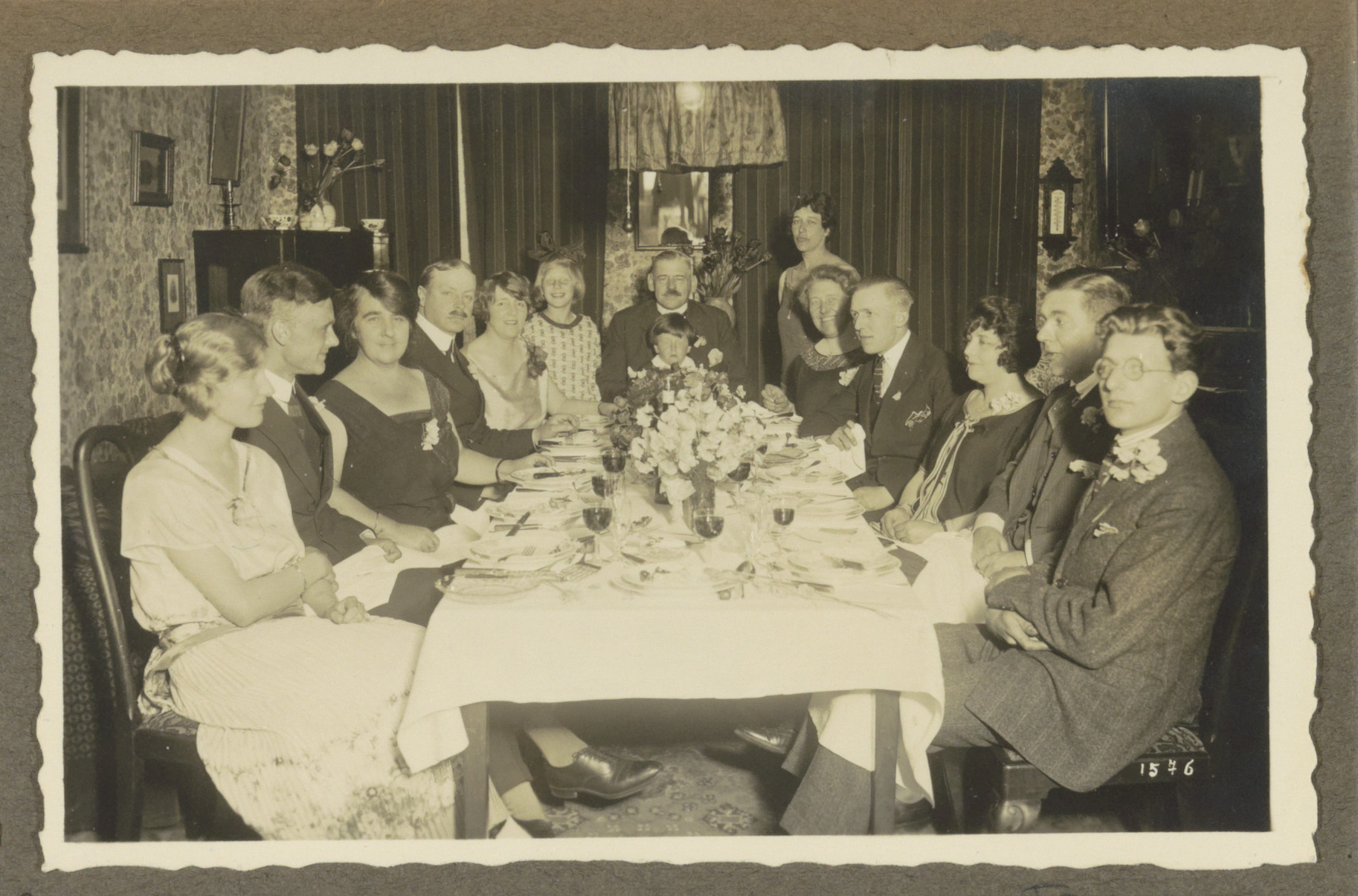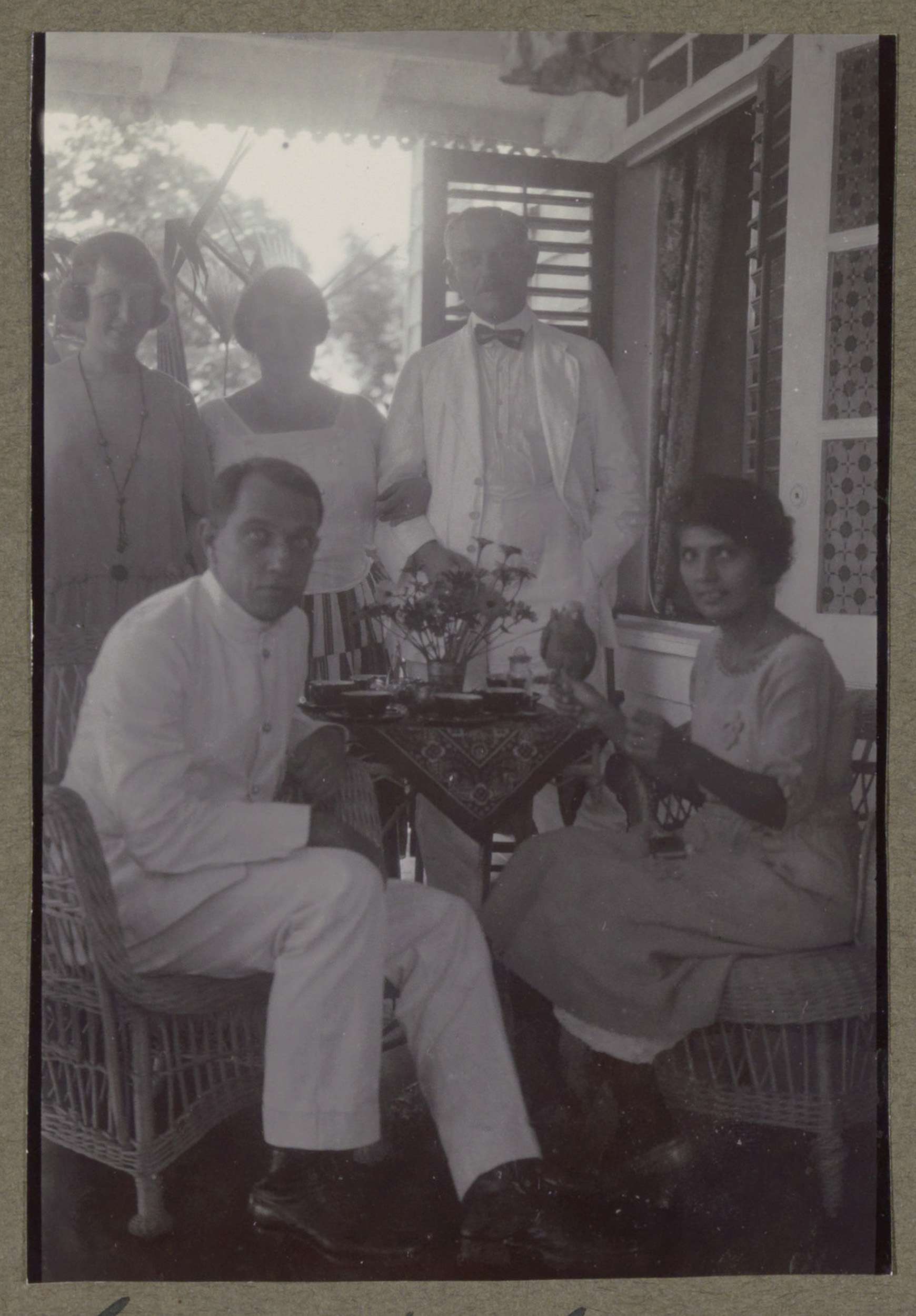 Gezelschap waaronder leden van de familie Ottenhof a...