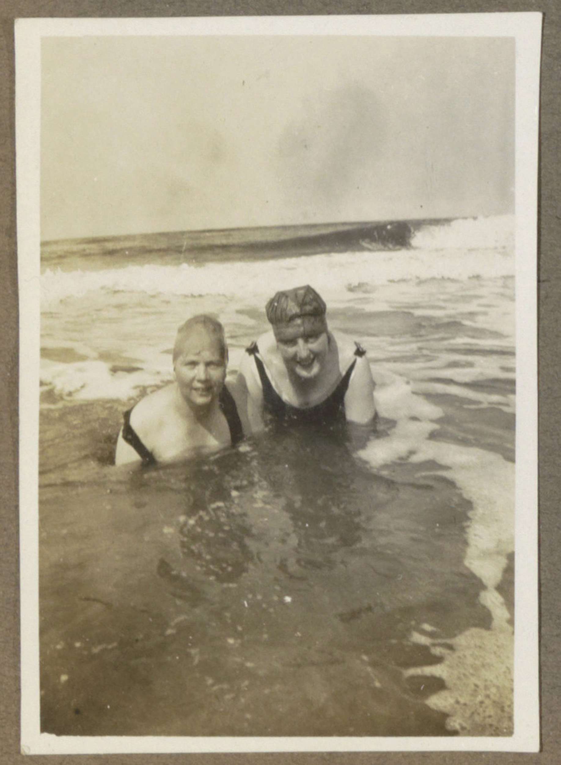 Twee vrouwen in zee, vermoedelijk bij Wijk aan Zee