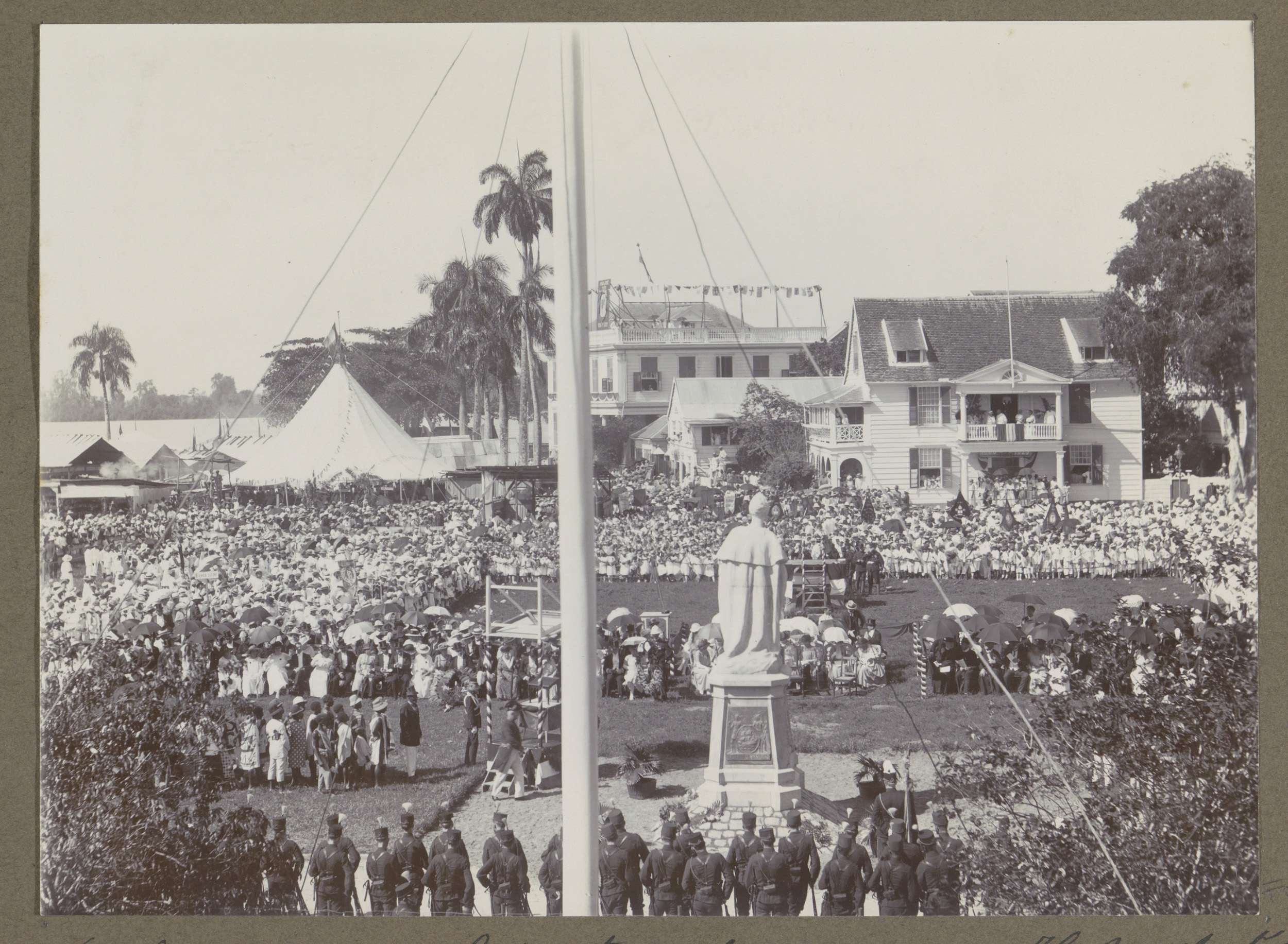 Onthulling van een standbeeld van koningin Wilhelmin...
