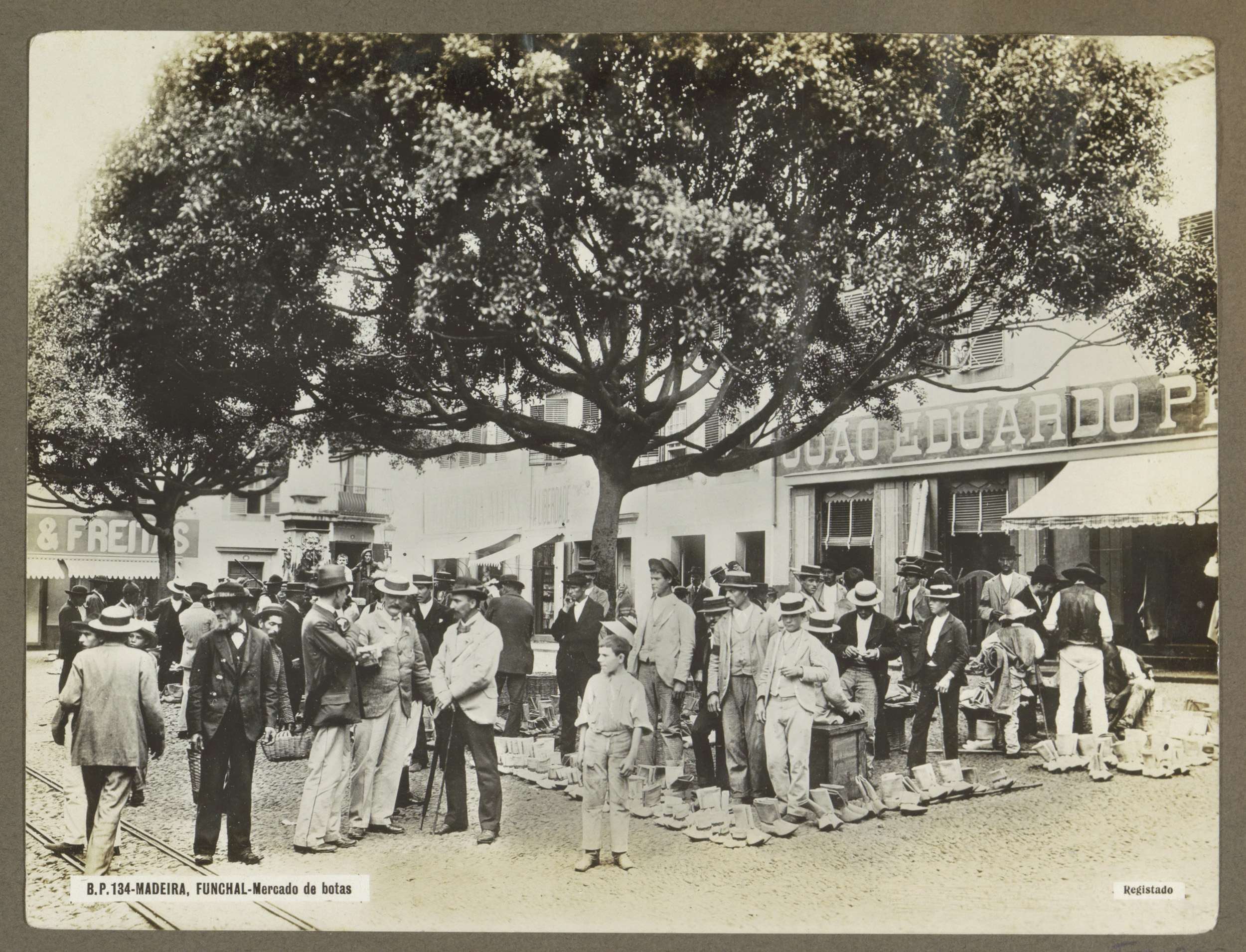 Mannen op een schoenenmarkt te Funchal op Madeira