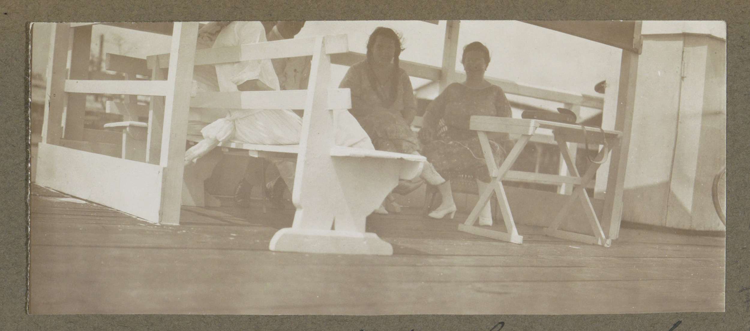 Twee vrouwen zittend op een bank, mogelijk in Scheve...