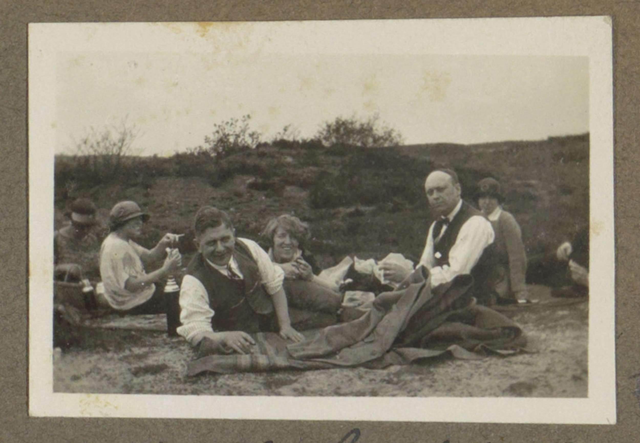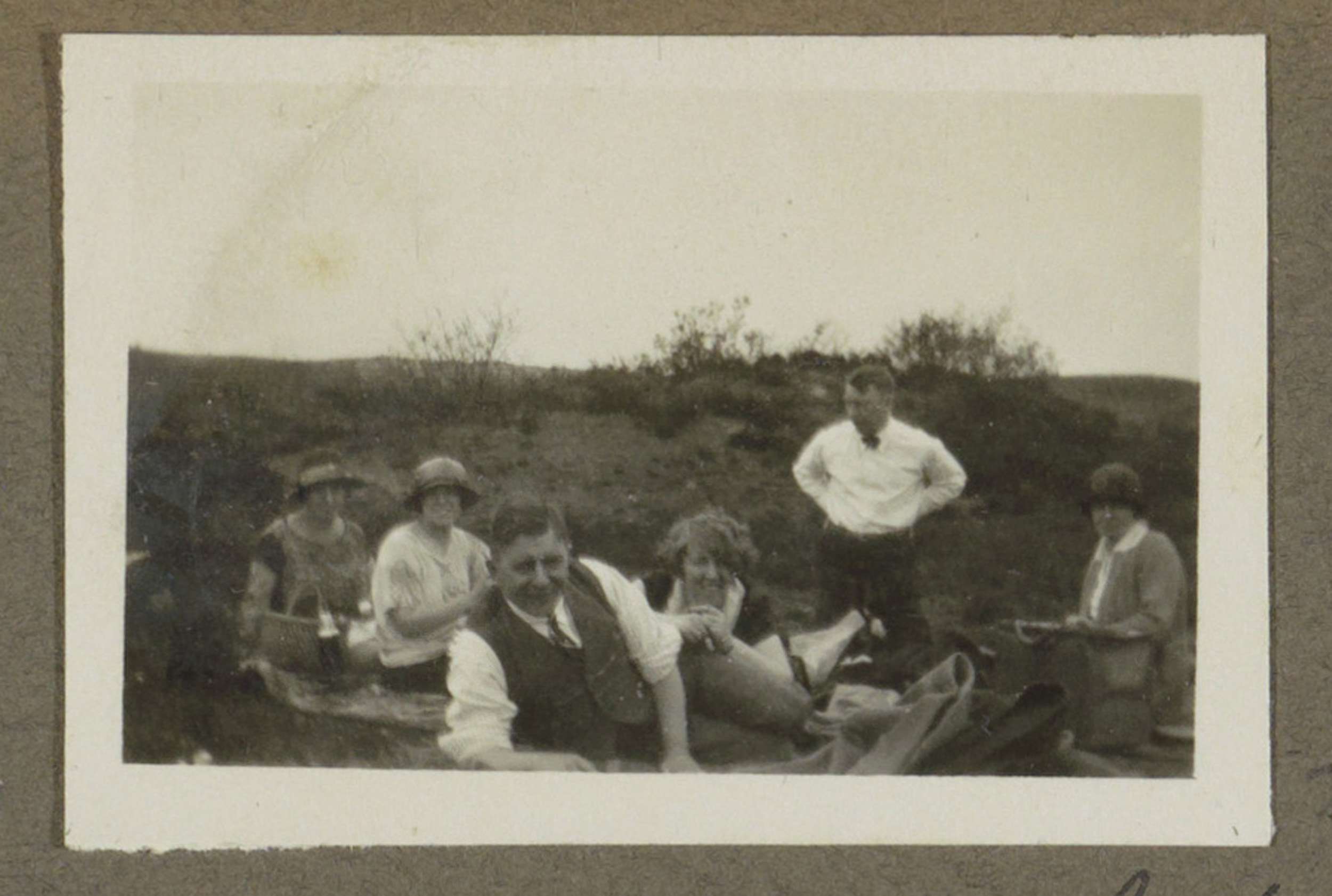 Gezelschap aan de thee in het Kievitsdal, tussen Baa...