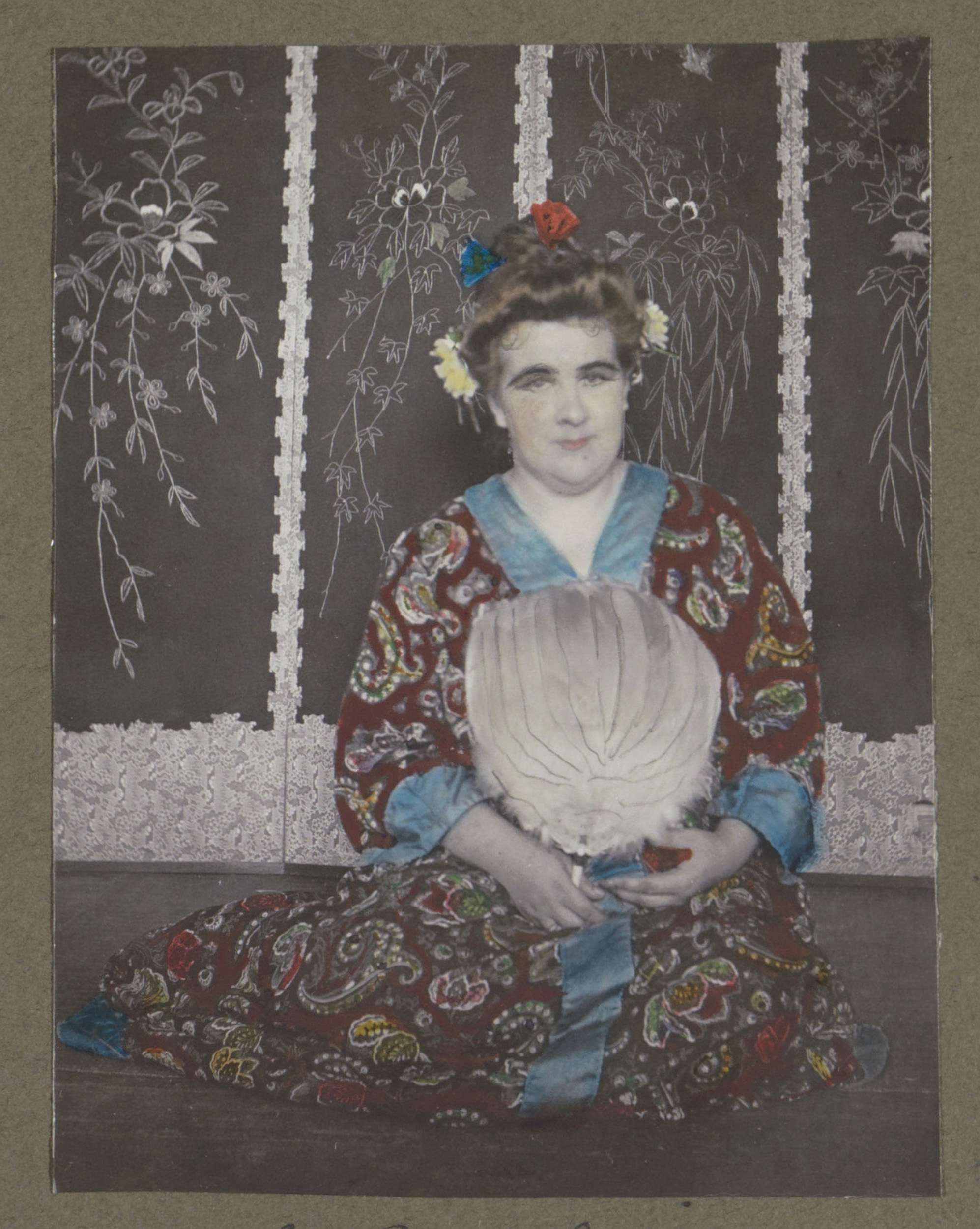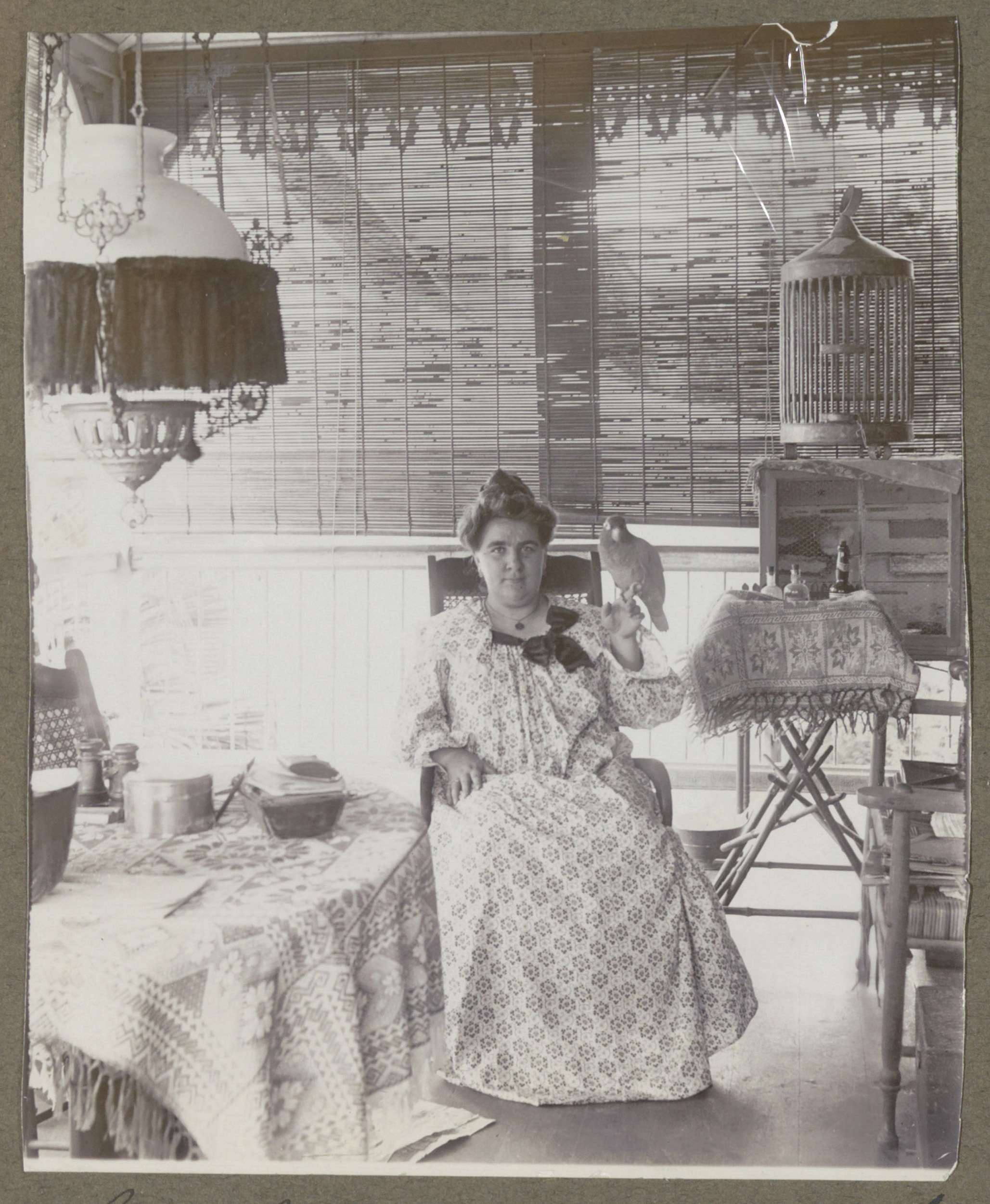 Zittende vrouw met vogel op de hand, mogelijk in Sur...