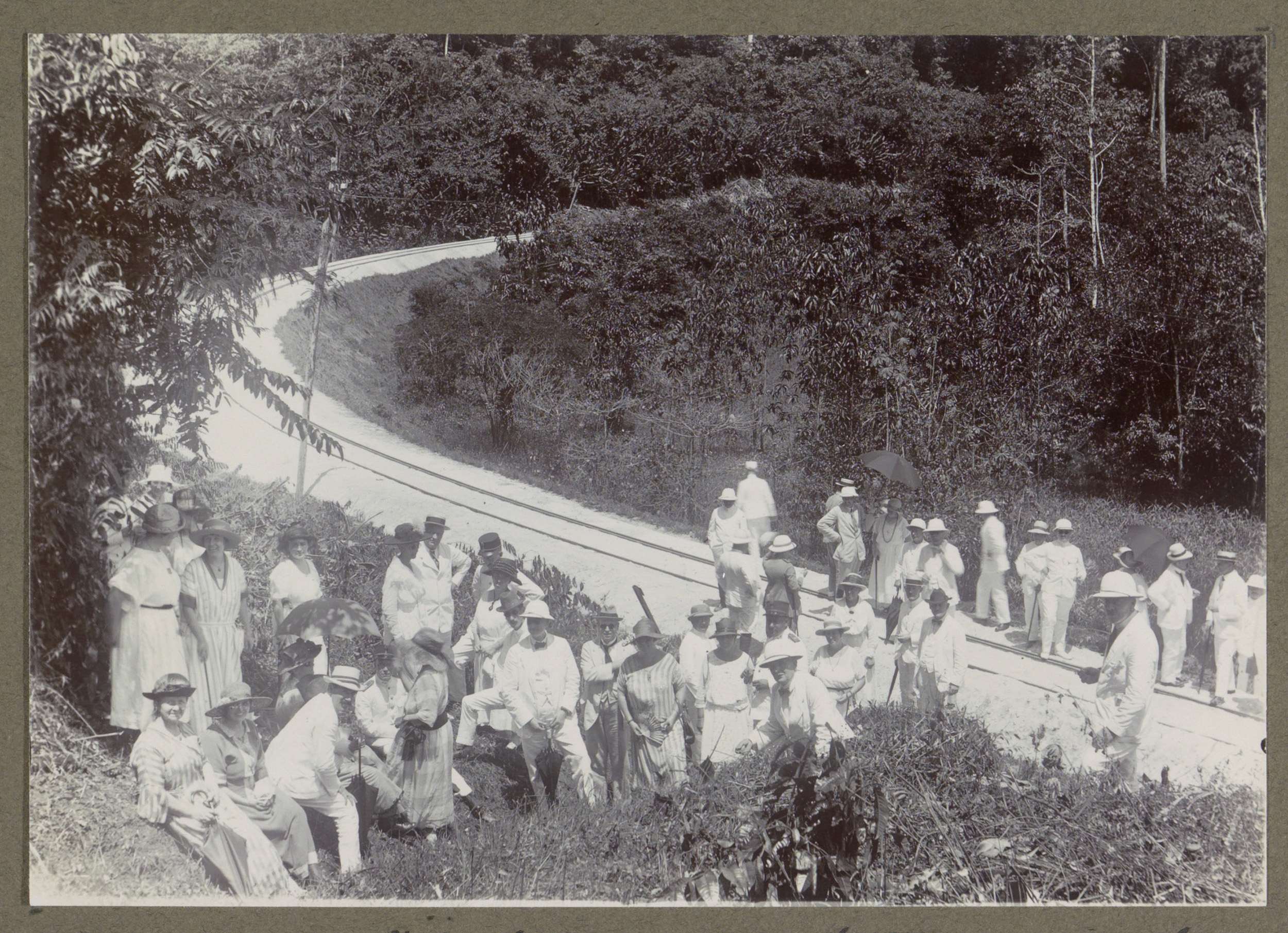 Gezelschap langs een spoorbaan op de Maäboberg in Su...