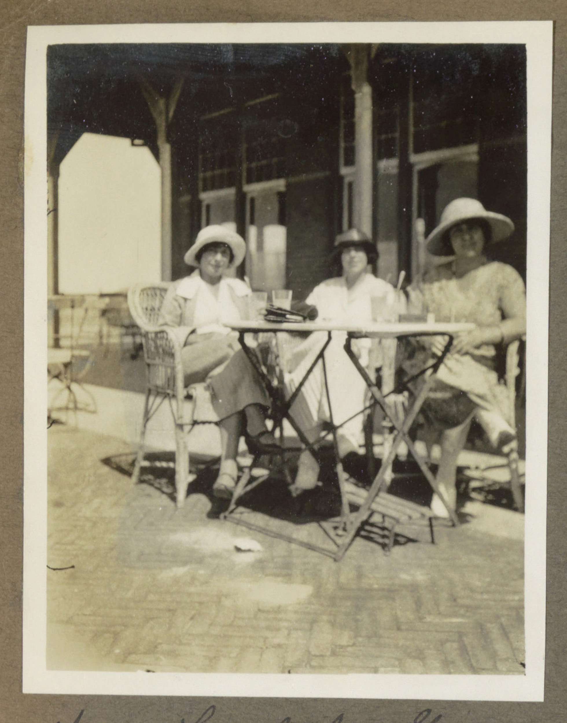 Drie vrouwen op het terras van het Badhotel in Wijk ...