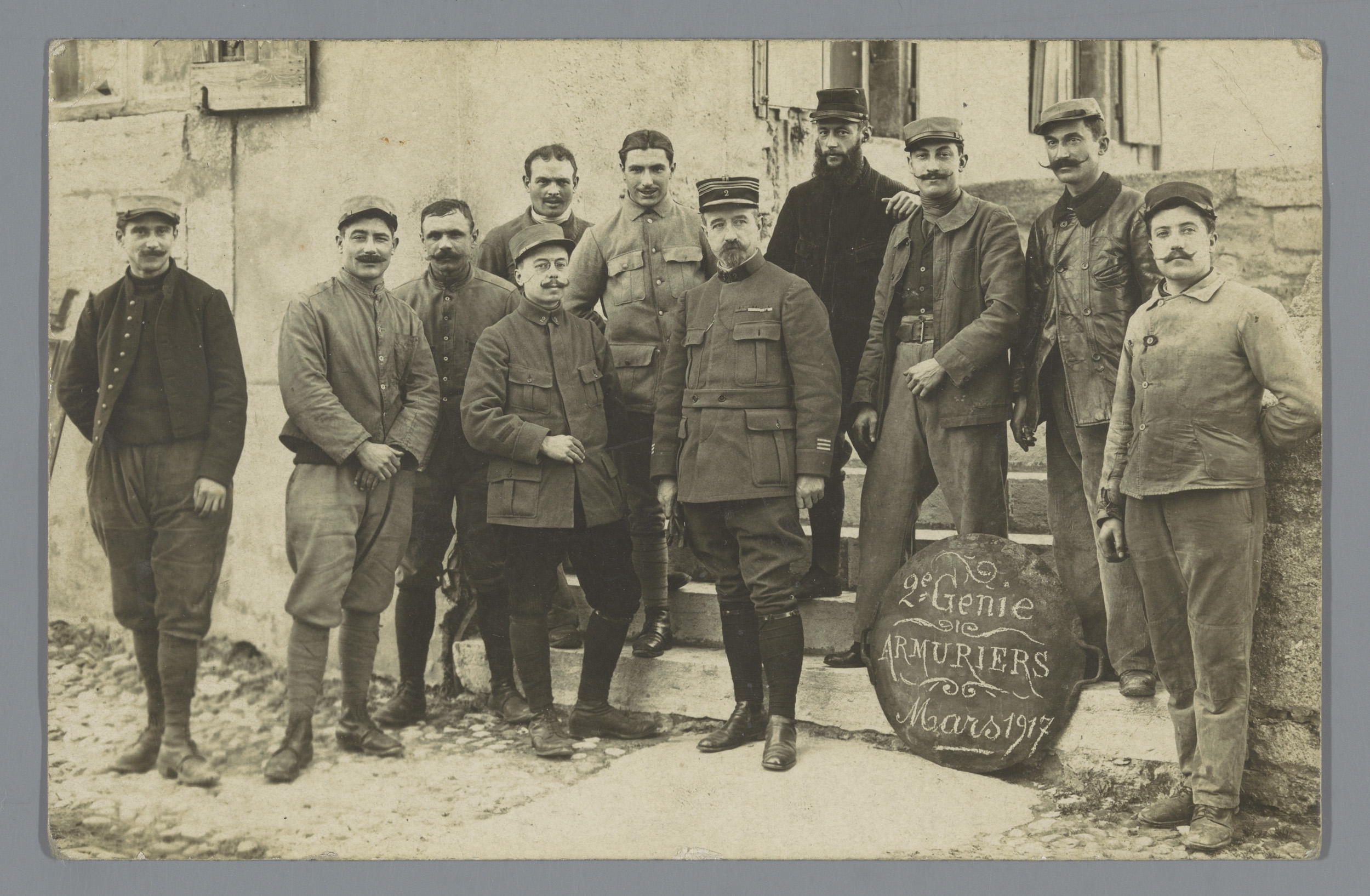 Groepsportret van (vermoedelijk) wapensmeden van het...