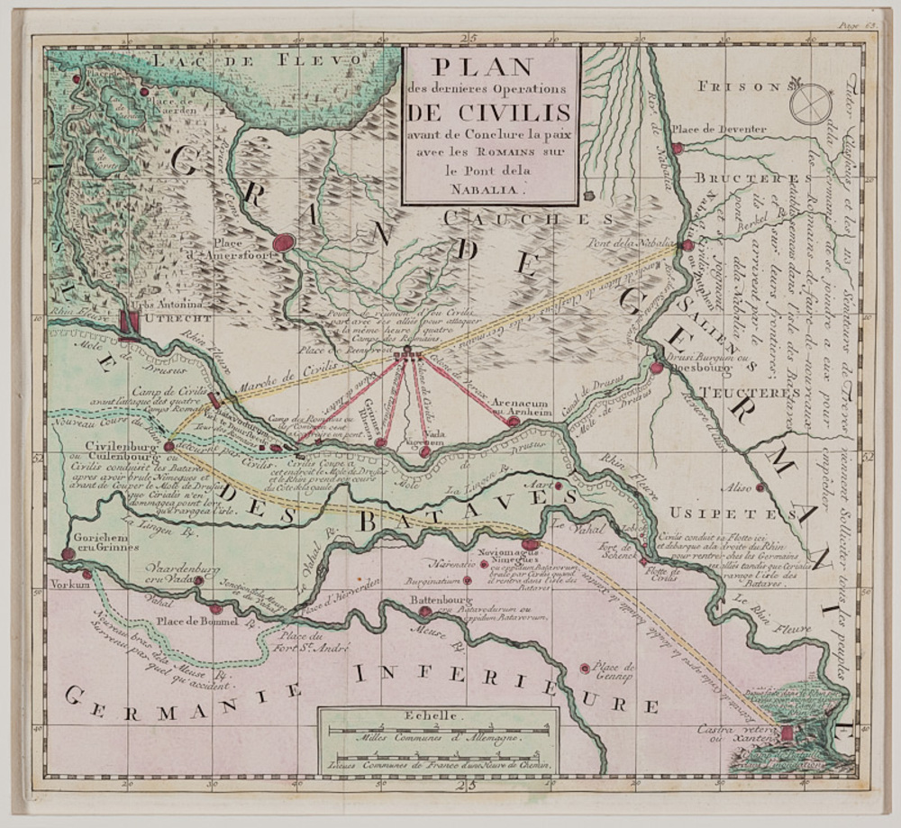 Kaart, gravure, voorstellende een kaart afbeeldende ...
