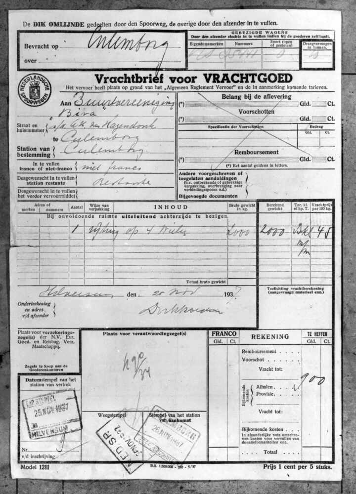 Foto, voorstellende een NS vrachtbrief ten behoeve v...