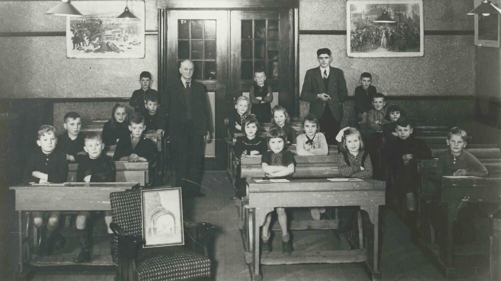 Foto, voorstellende een klas van de Scheffelschool, ...