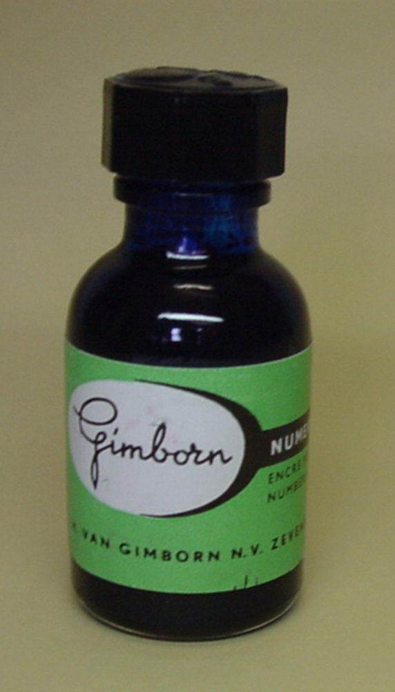 Inktfles van glas gevuld met vulpeninkt door H. van ...