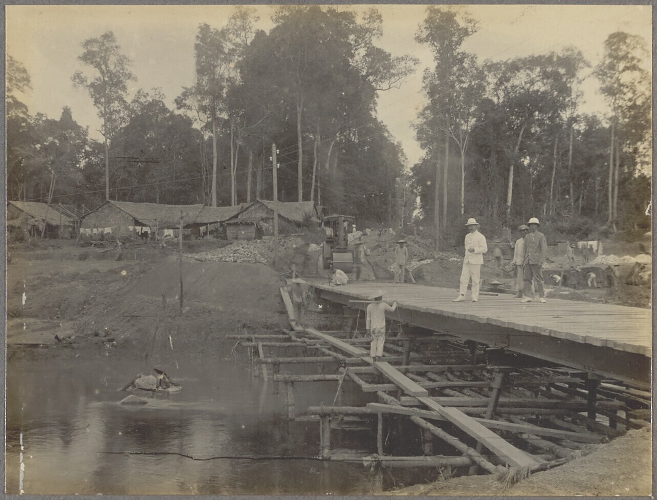 Bouw van een brug in de vallei Rambat