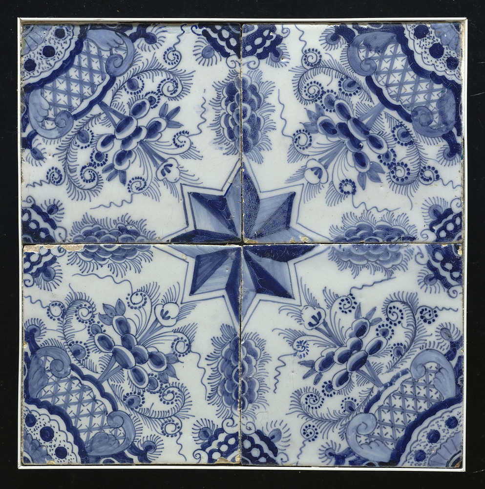 Tegelveld bestaande uit vier tegels van keramiek met...