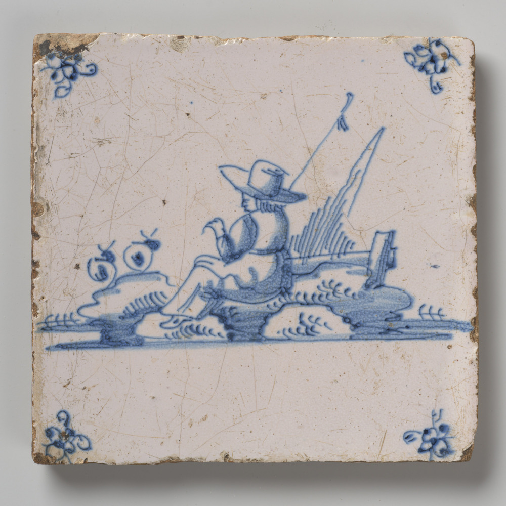 tegel van aardewerk met tinglazuur, voorstellende: m...