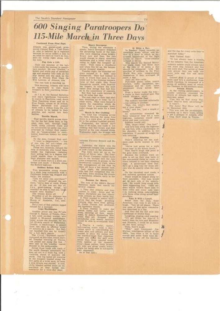 Krantenartikel. 600 Singing Paratroopers Do 115-mile...