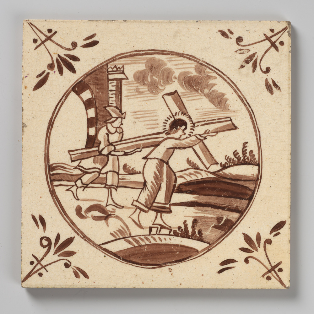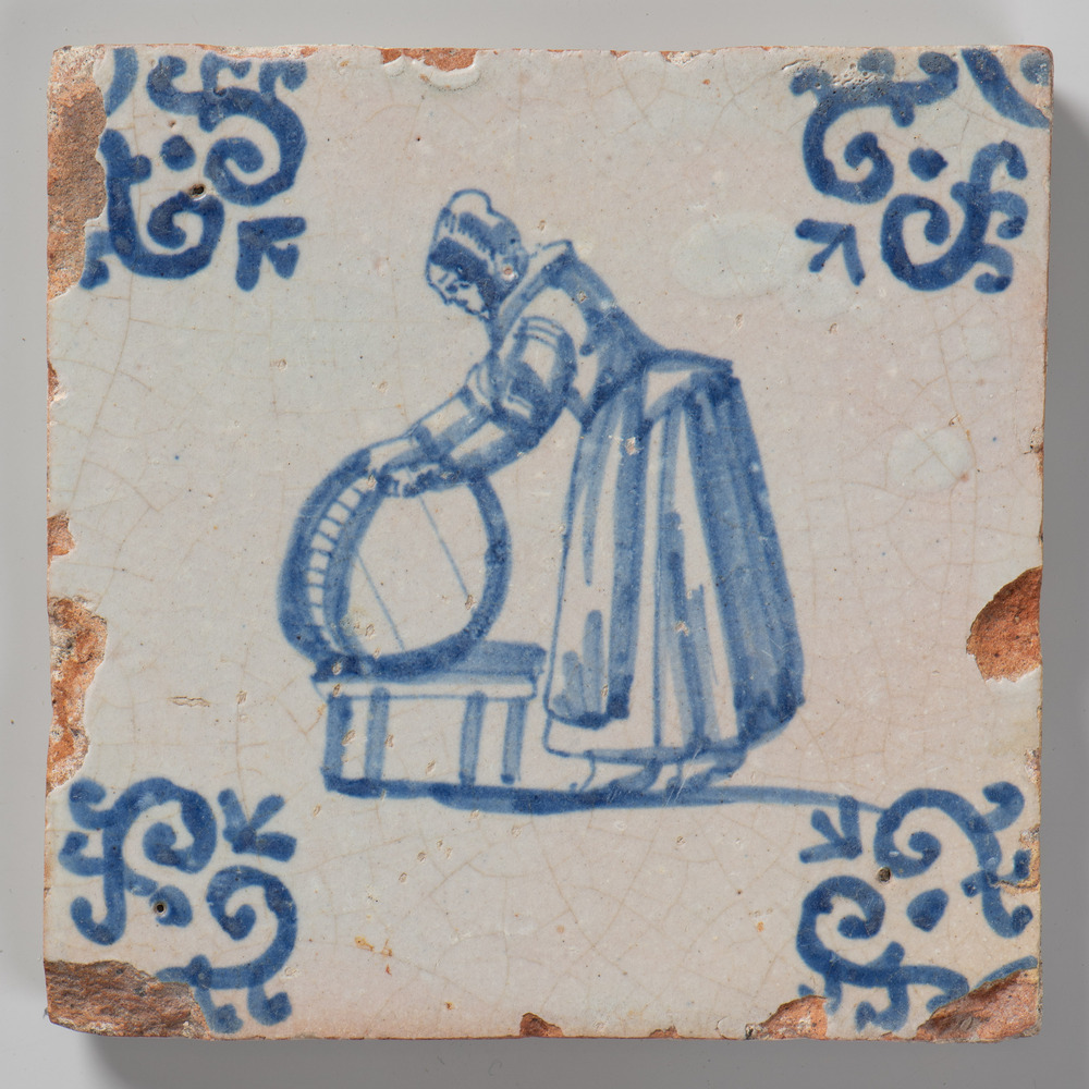 tegel van aardewerk in transfertechniek, voorstellen...