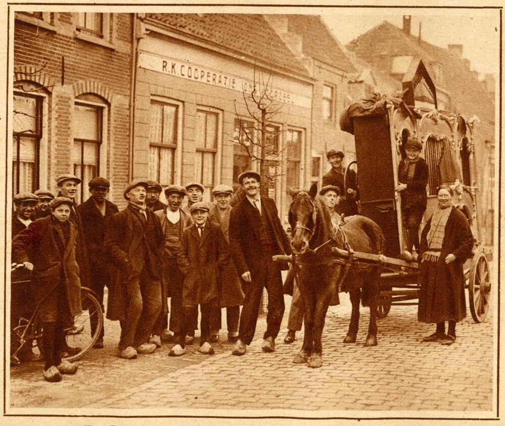 Foto, voorstellende een draaiorgel, Zandstraat te Cu...