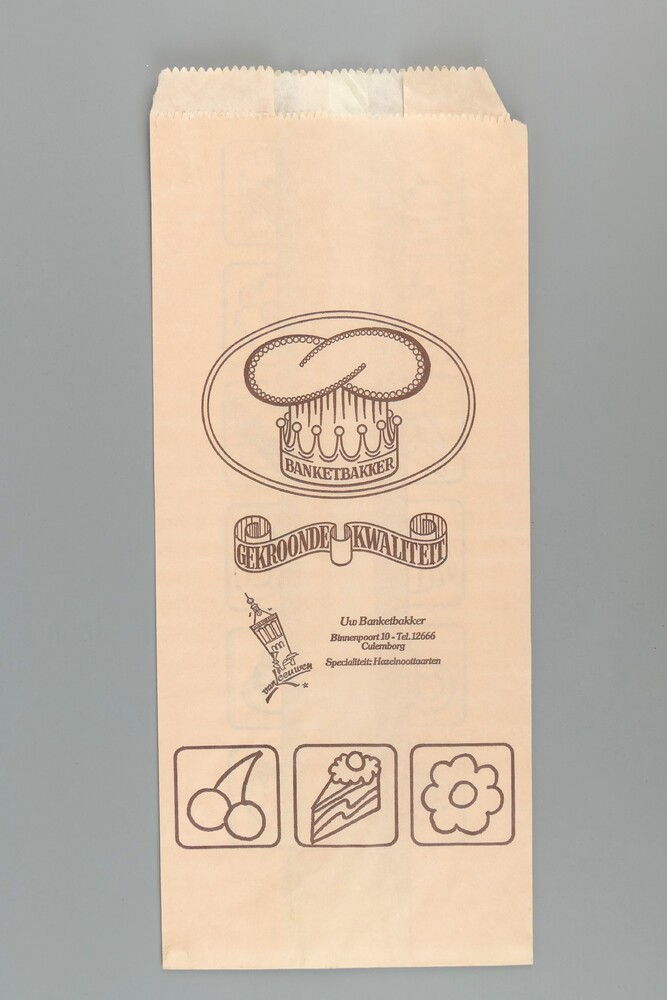Zak van bedrukt papier voor het verpakken van koekjes.