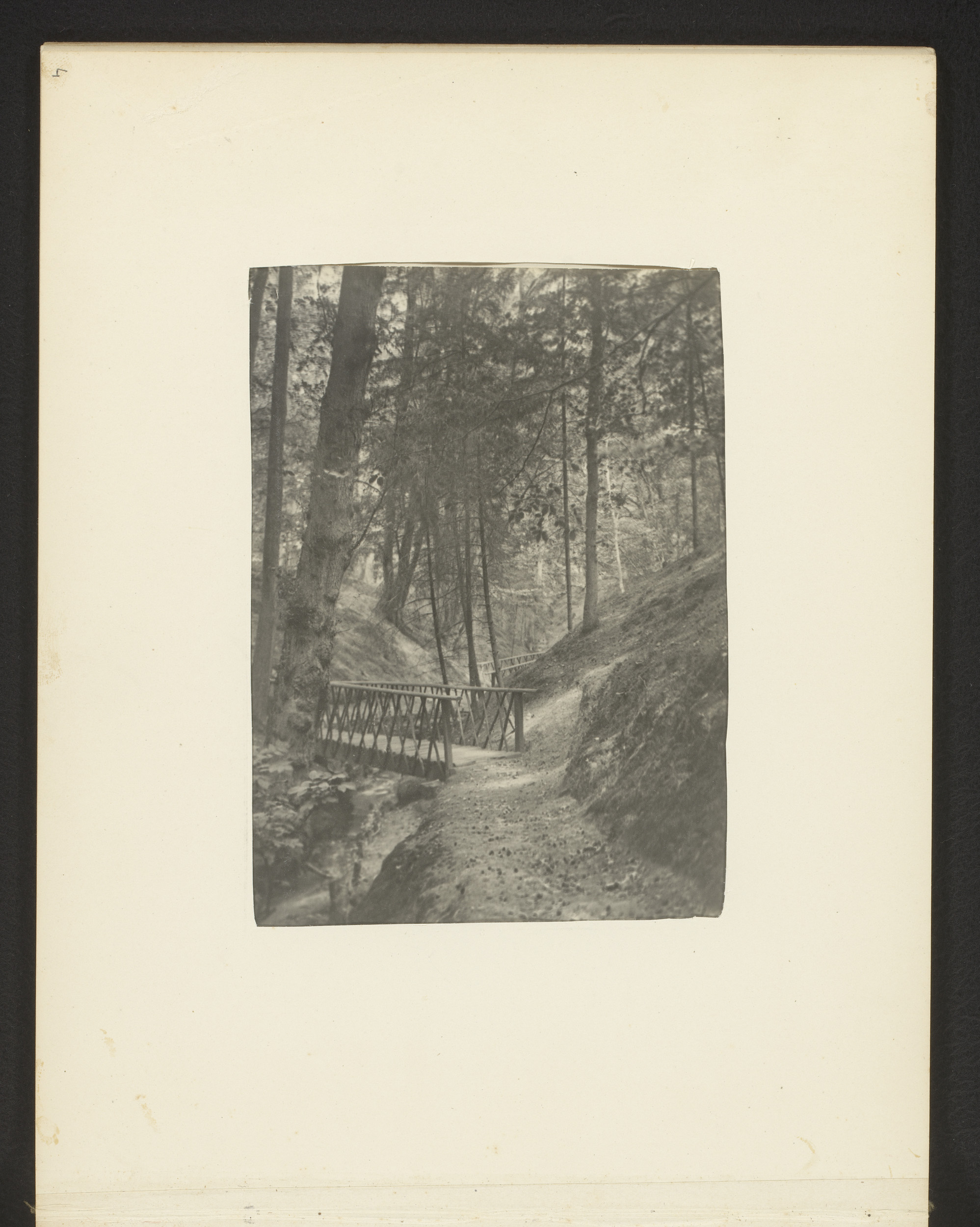 Gezicht op een bergbeek met op de voorgrond een vrou...
