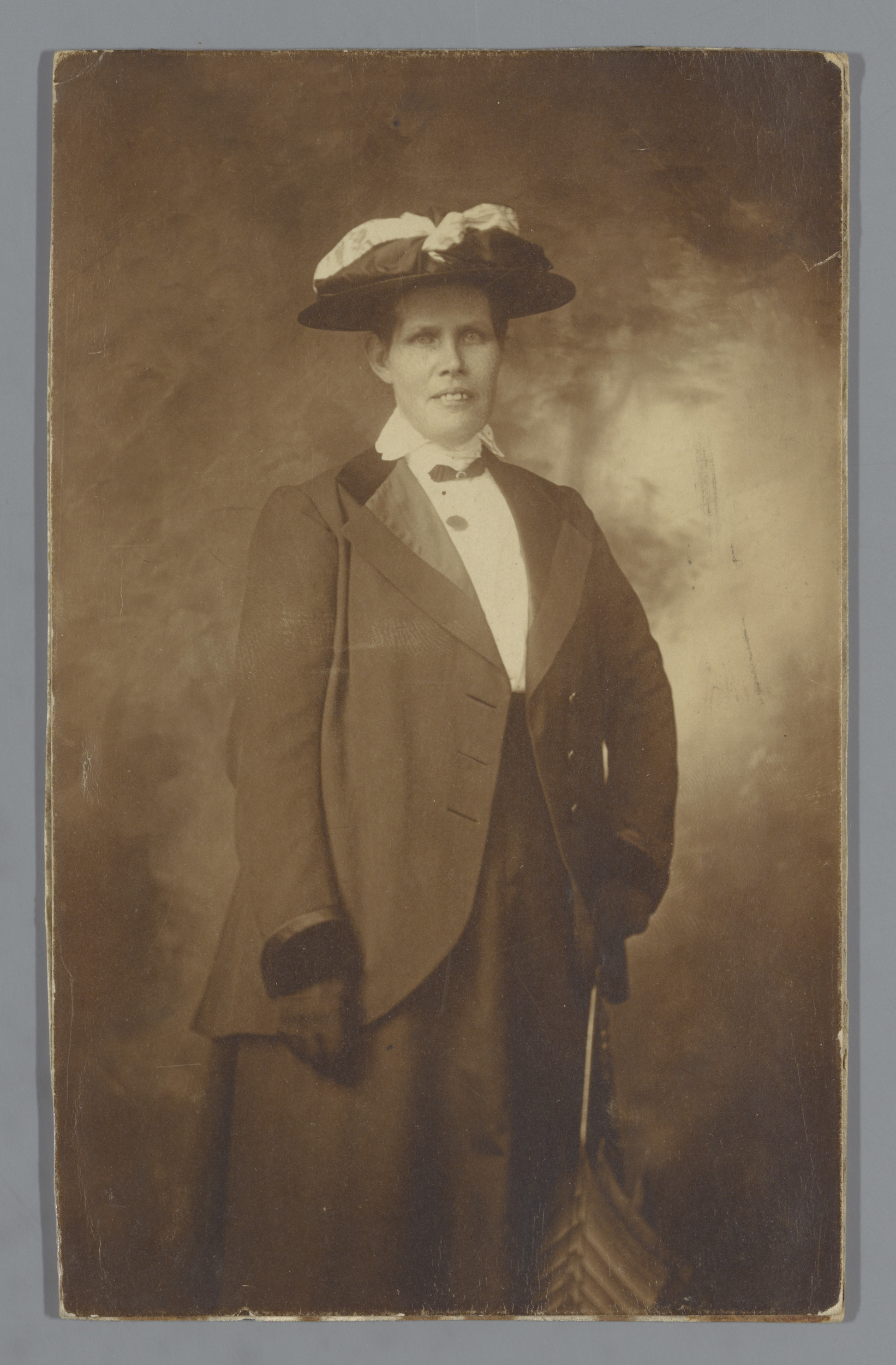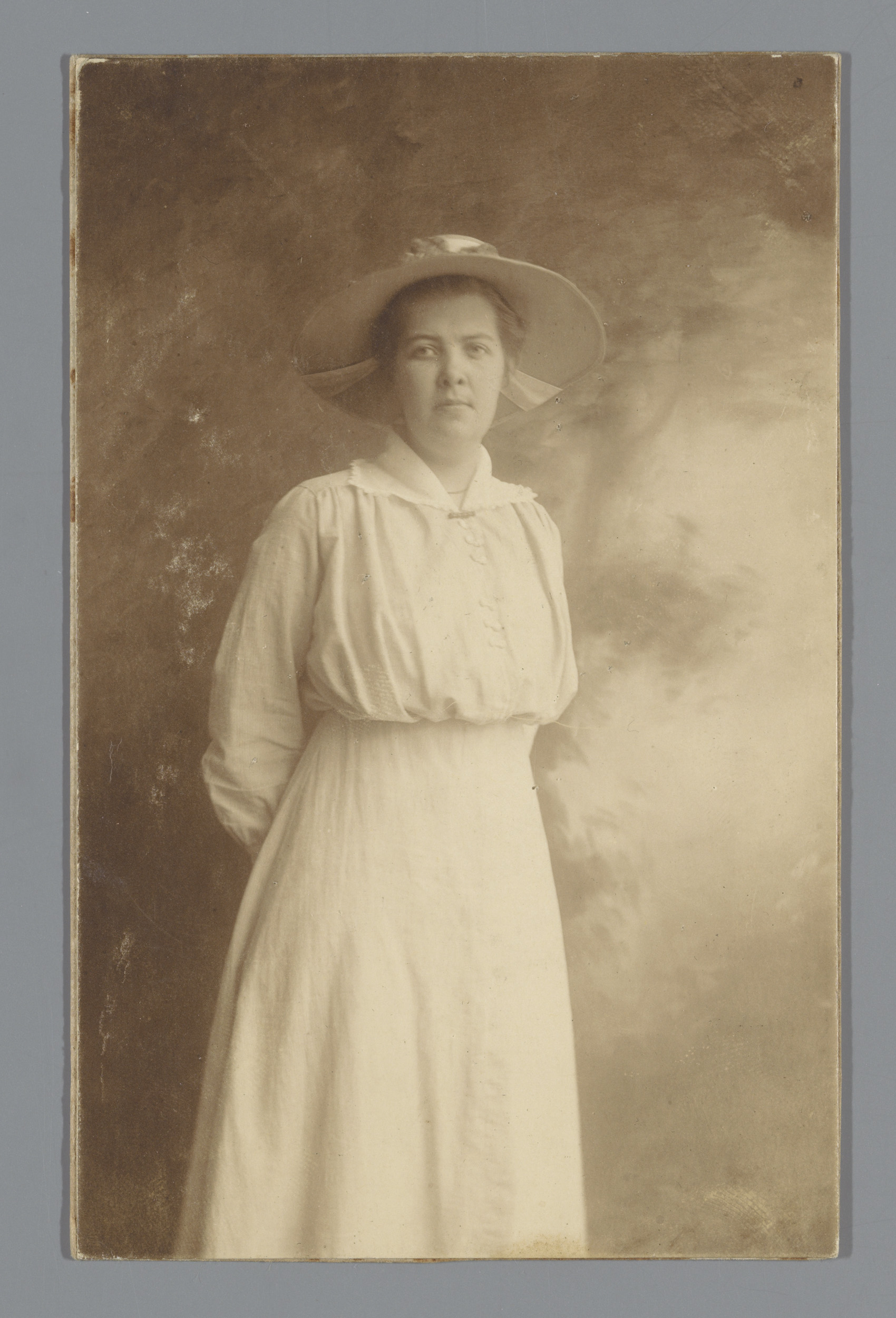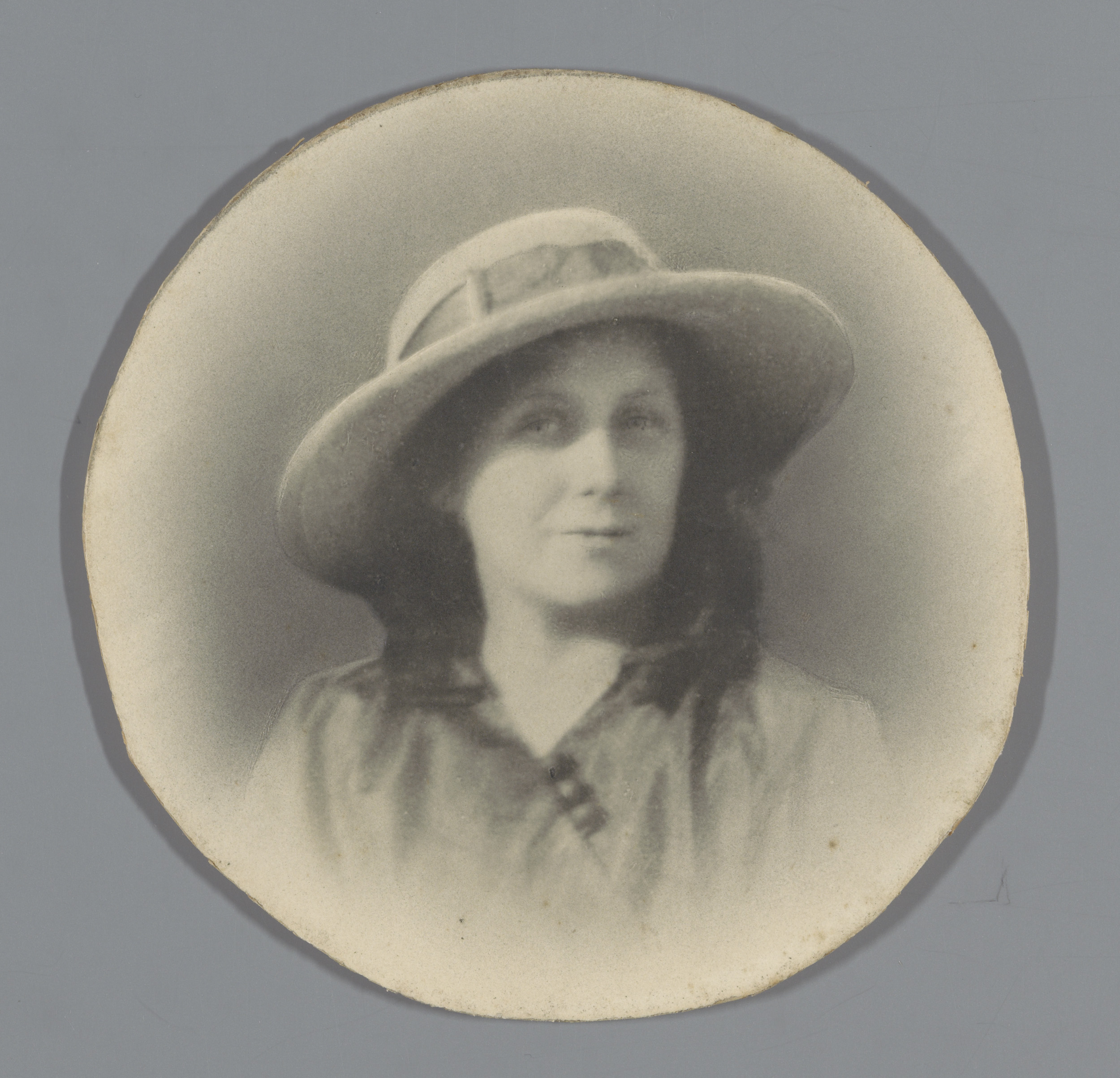Portret van een onbekende vrouw met een zonnehoed