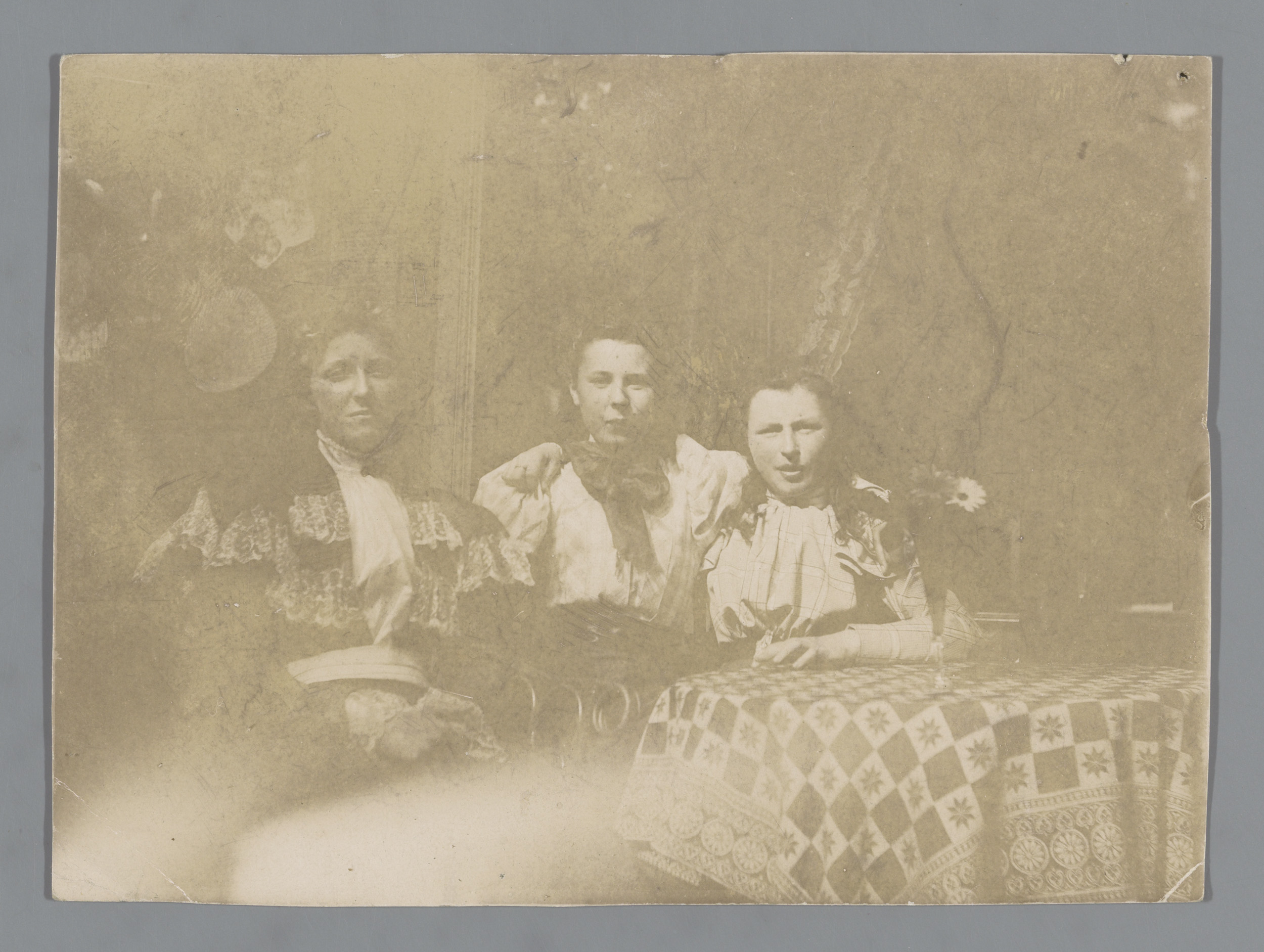 Portret van drie onbekende vrouwen aan een tafel in ...