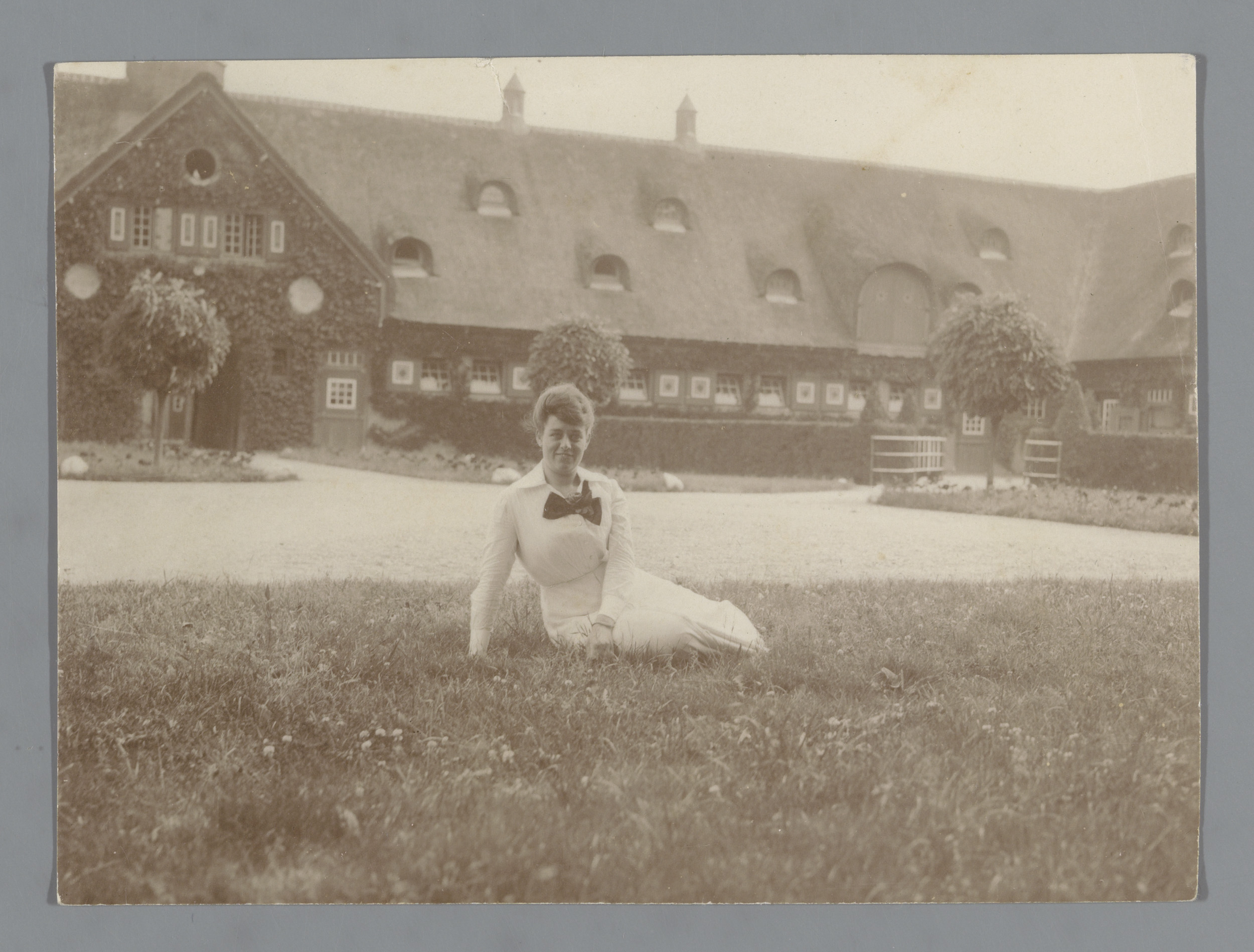 Portret van een onbekende vrouw op een grasveld voor...