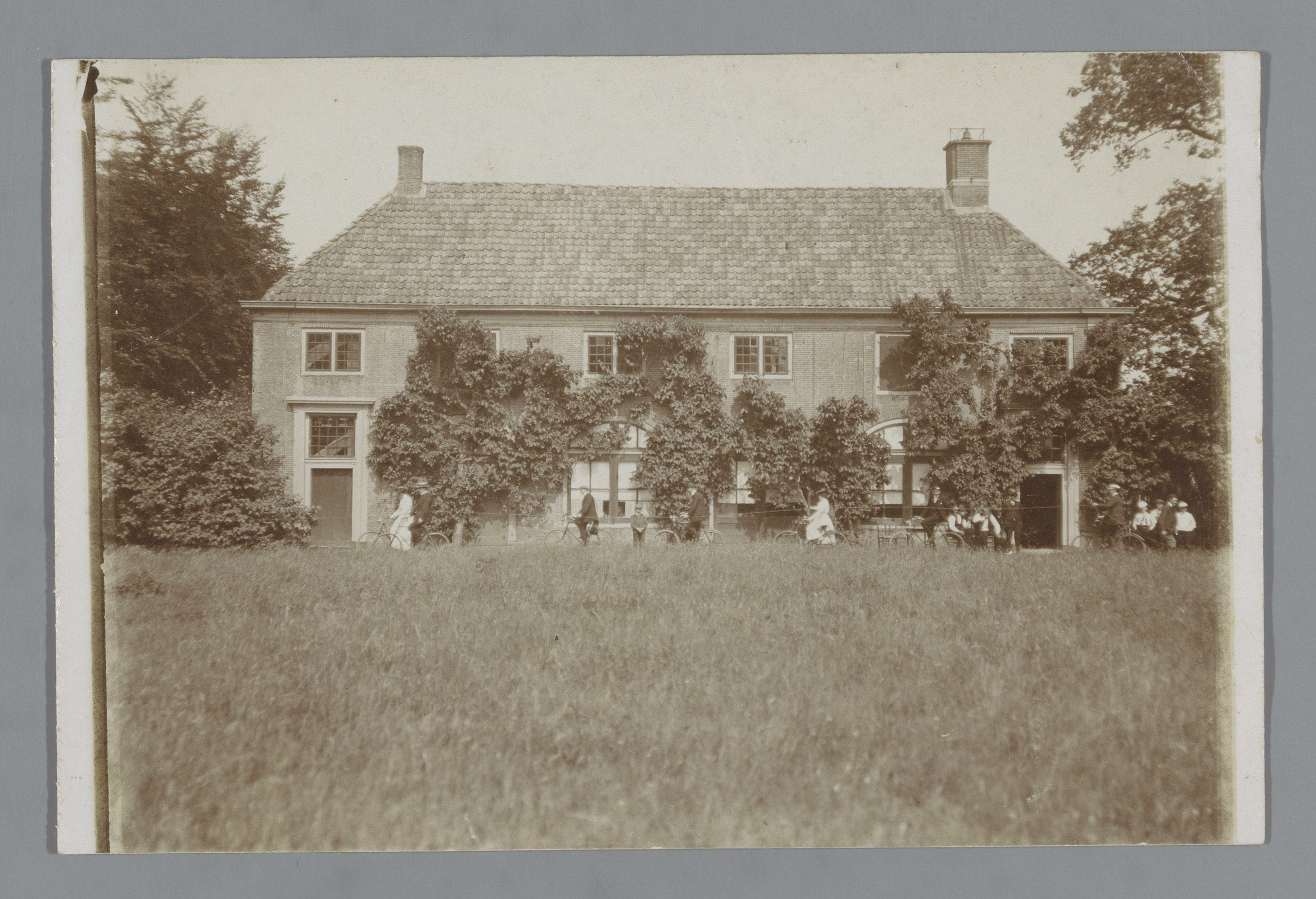 Fietsend gezelschap voor een landhuis