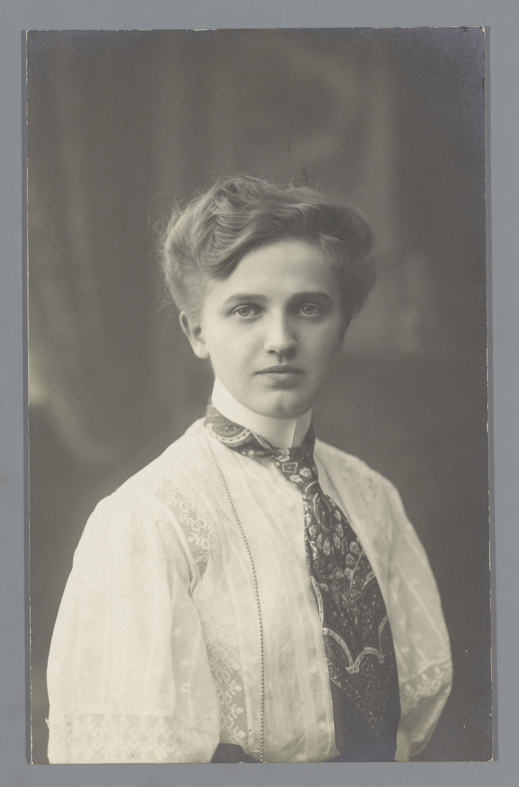 Portret van een onbekende jonge vrouw met een stropdas