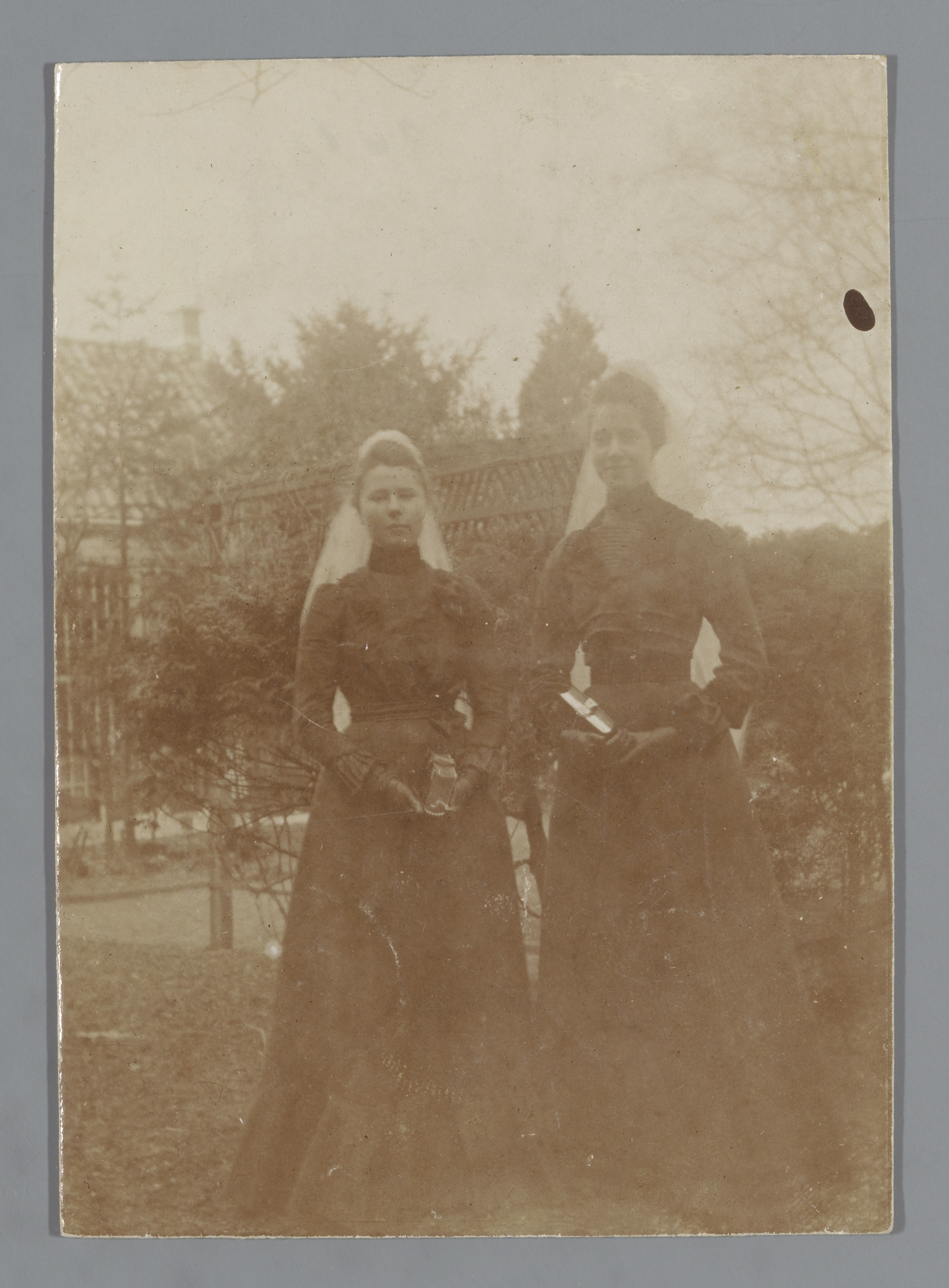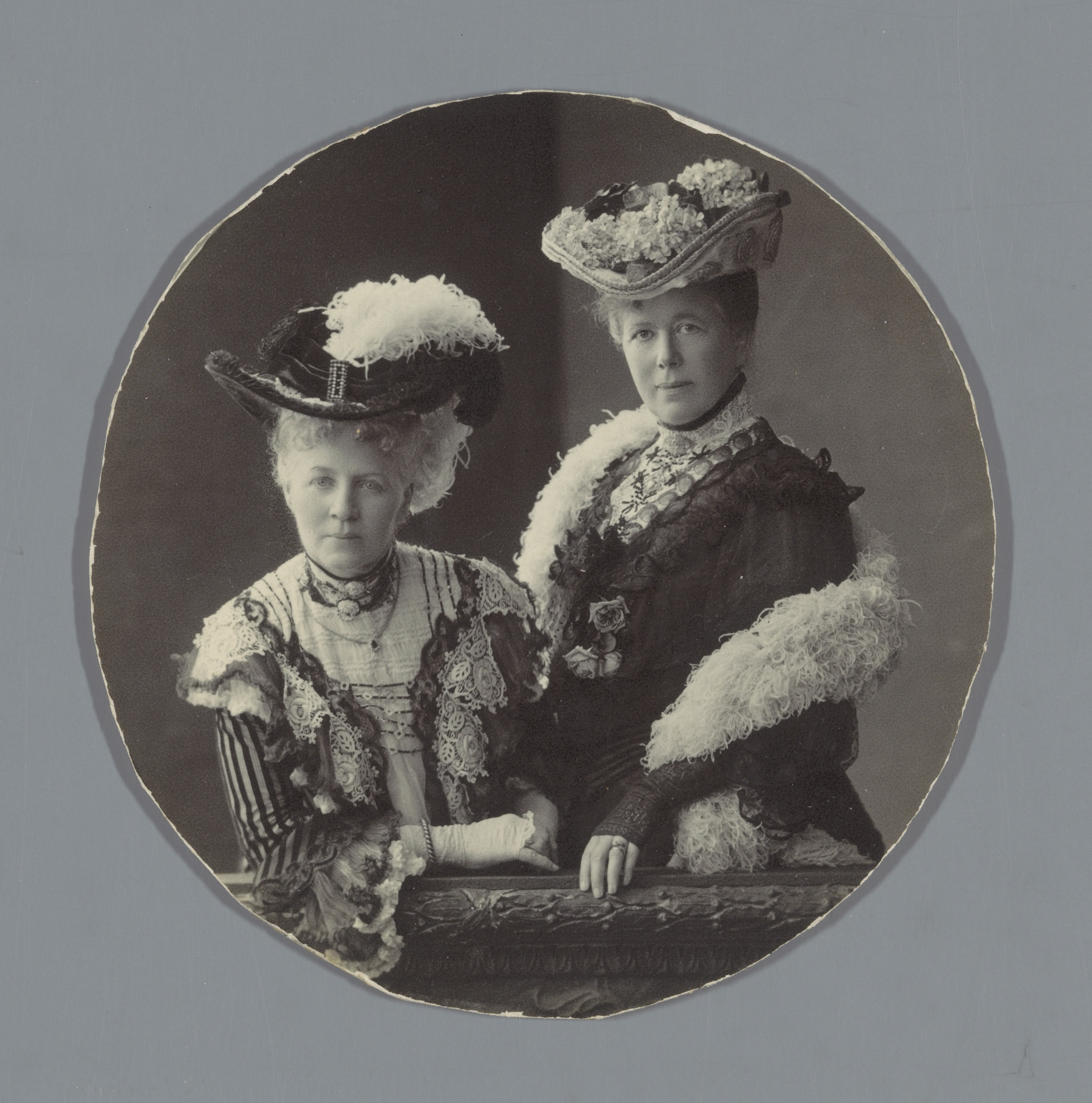 Portret van twee vrouwen in zwarte jurken