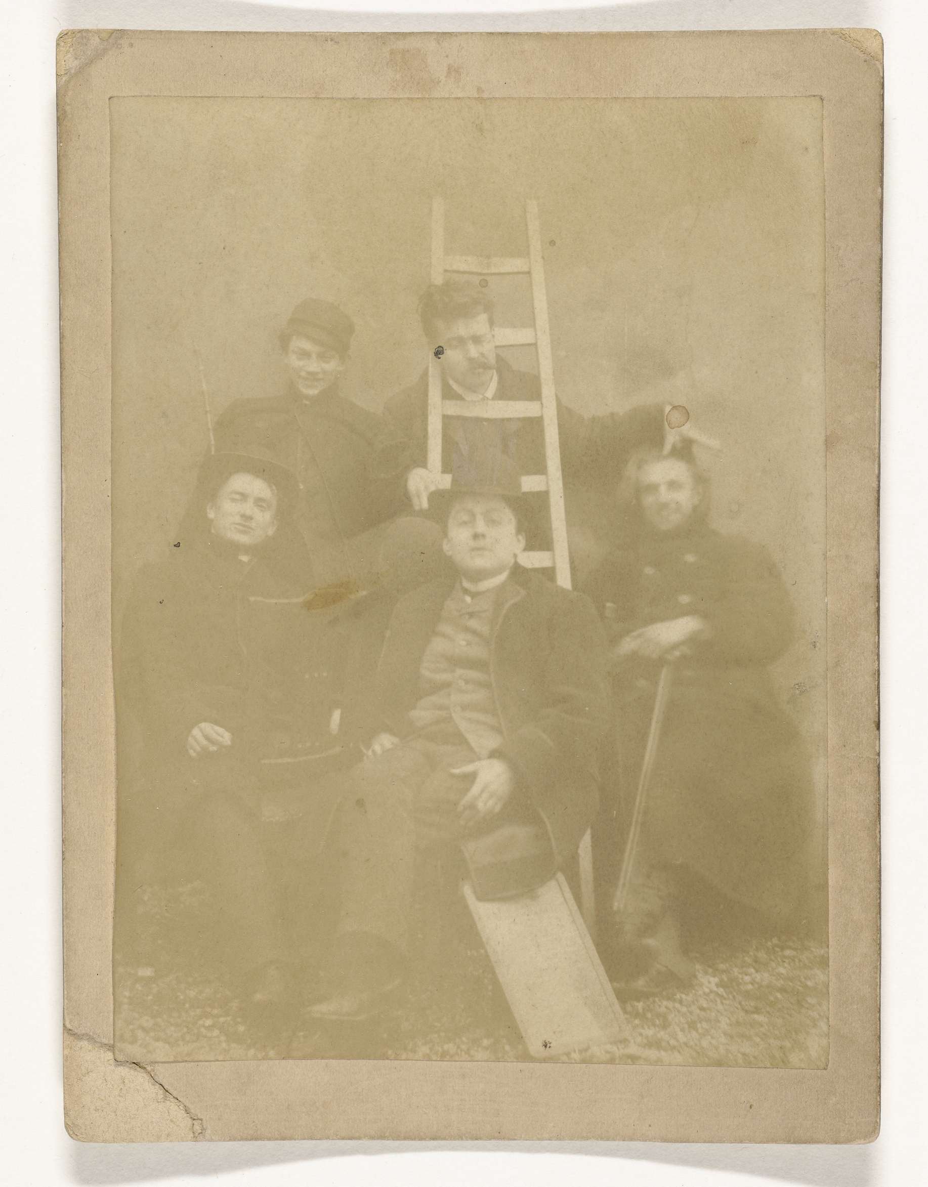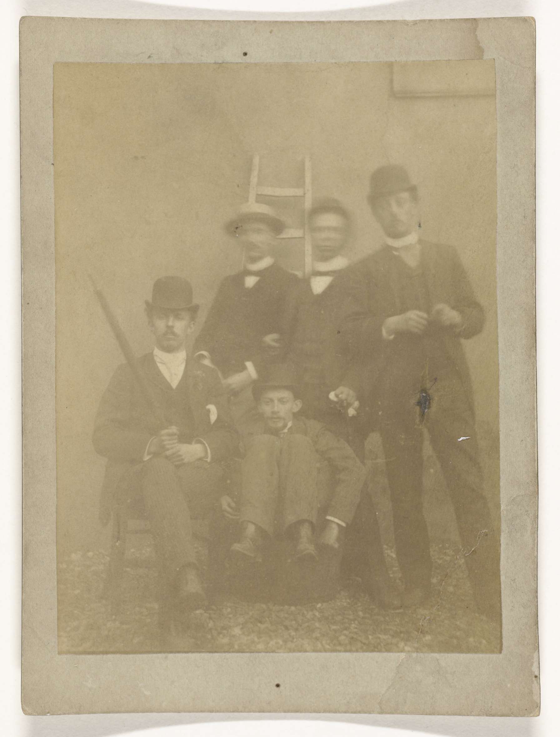 Portret van vijf onbekende mannen rond (vermoedelijk...