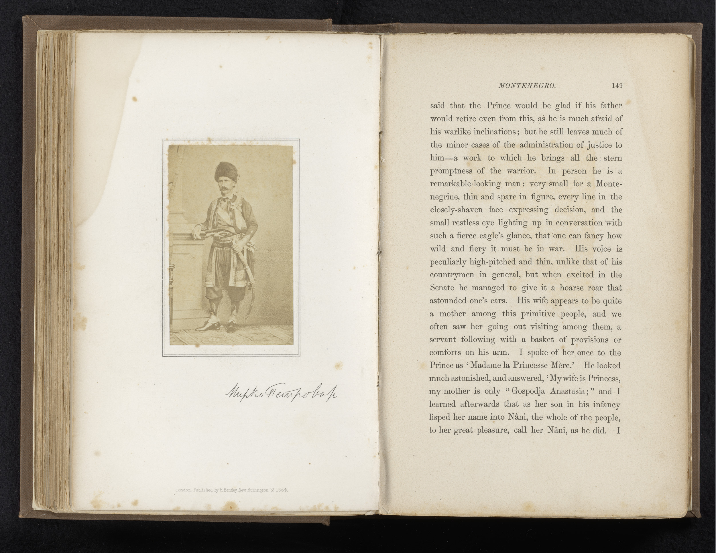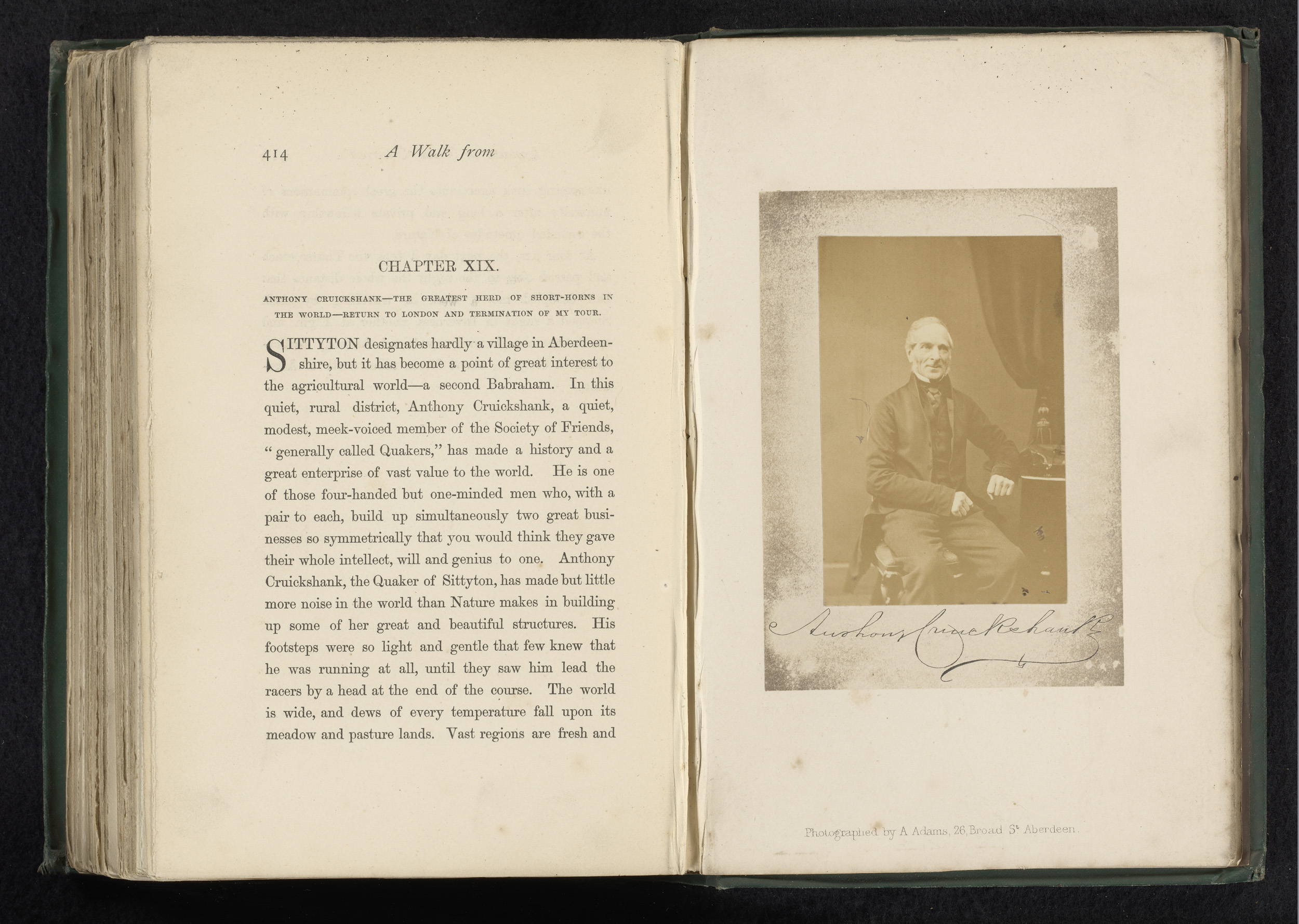 Portret van Elihu Burritt met hoed, tas en paraplu i...
