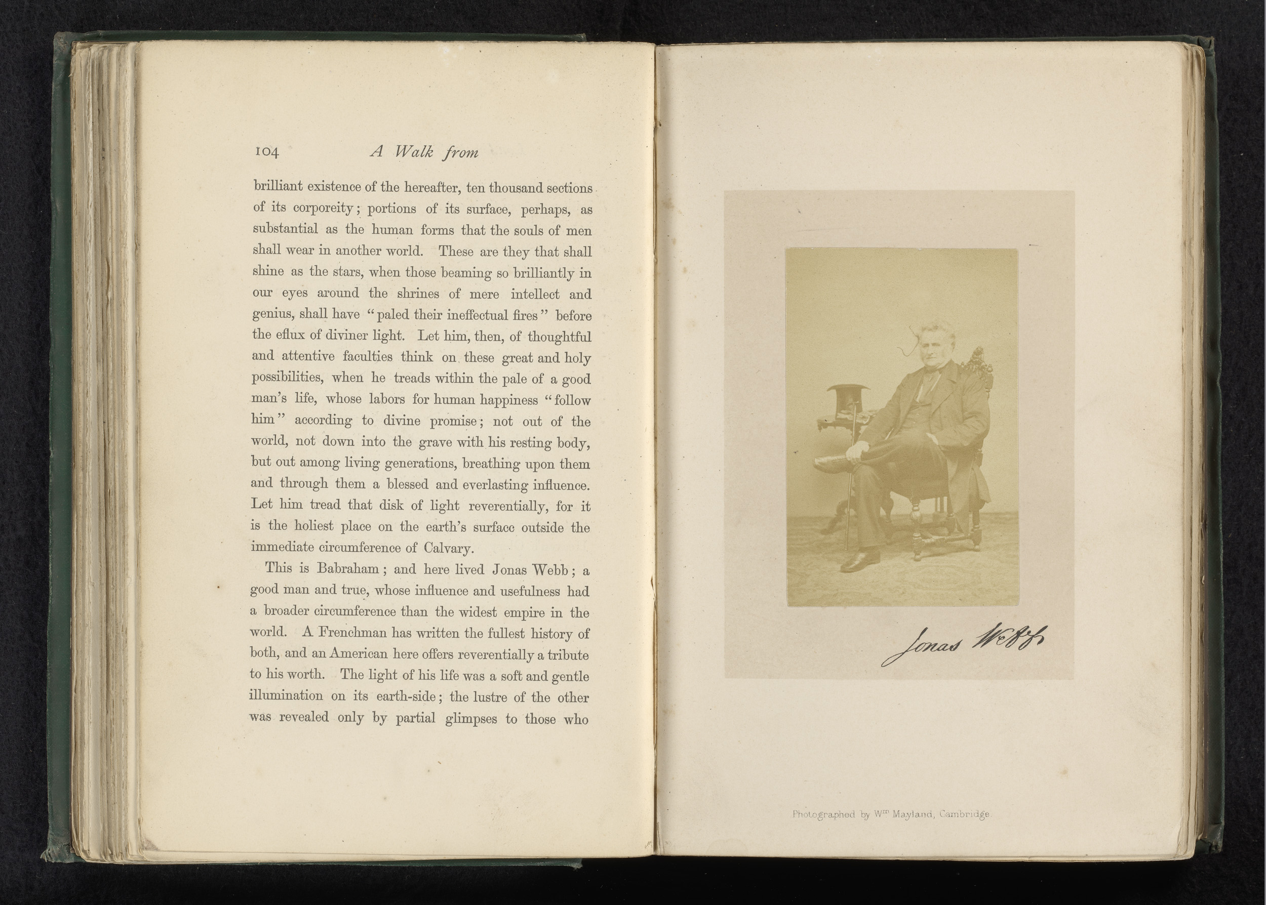 Portret van Jonas Webb met wandelstok en hoed naast ...