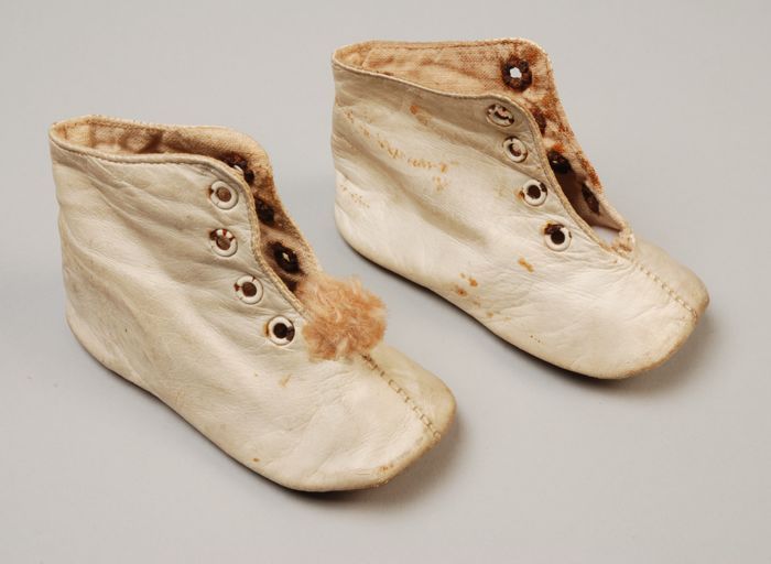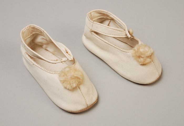 Wit leren babylaarsjes met vetersluiting en wollen p...