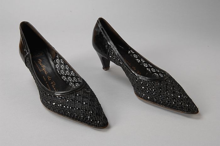 Zwarte pumps, gevlochten met strookjes imitatie lakl...