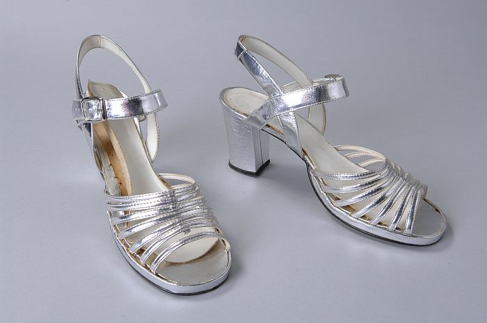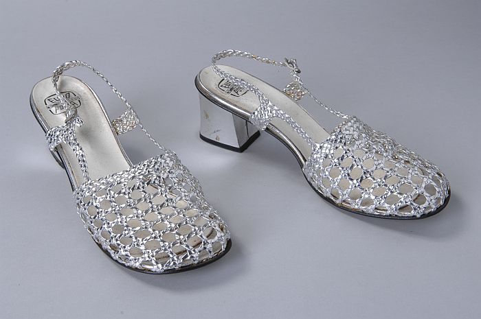 Gevlochten zilverkleurig imitatie-leren slingbacks m...