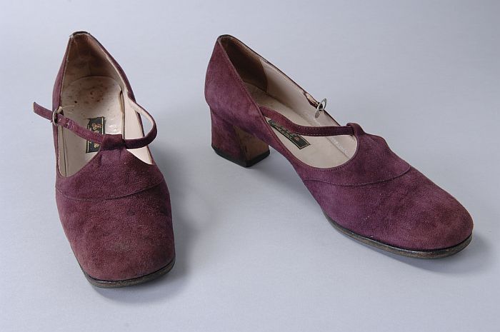 Paarse suède hakschoenen met wreefbandje met gespslu...