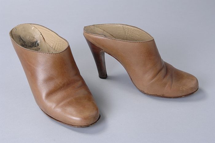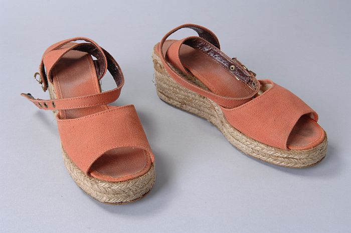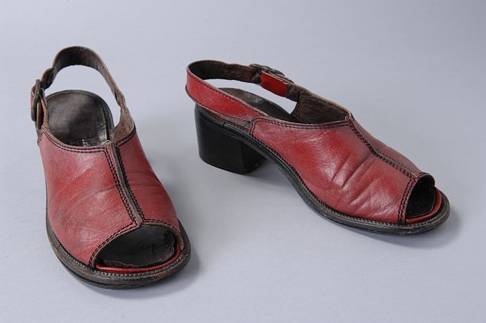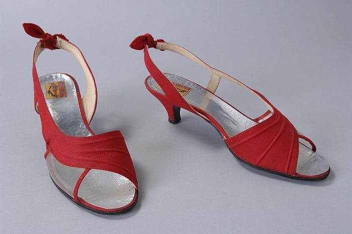 Rode linnen slingbacks met open teen, buitenzijde vo...