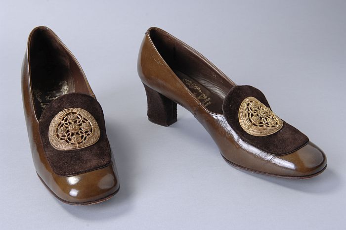 Pumps van bronskleurig imitatie-lakleer met metaalgl...