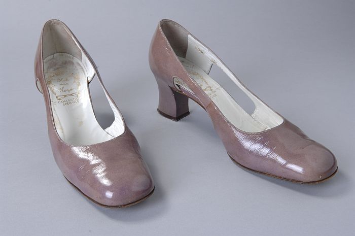 Lila lakleren pumps met stompe neus en blokhakje, zi...
