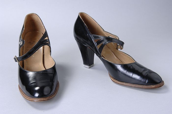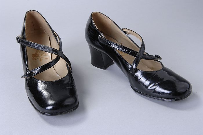Zwarte lakleren damesschoenen met gekruiste wreefban...