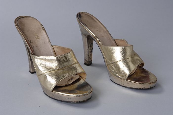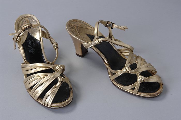 Goudkleurige sandalettes van smalle bandjes imitatie...