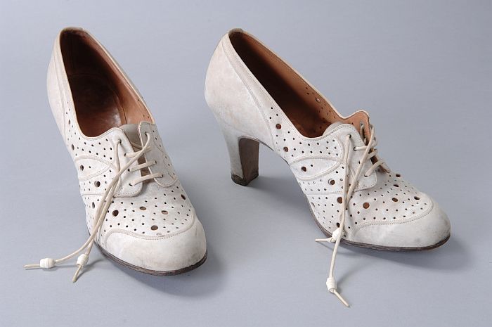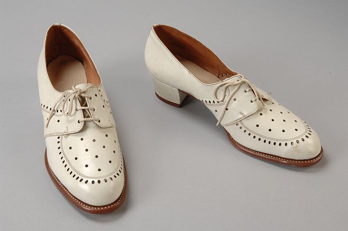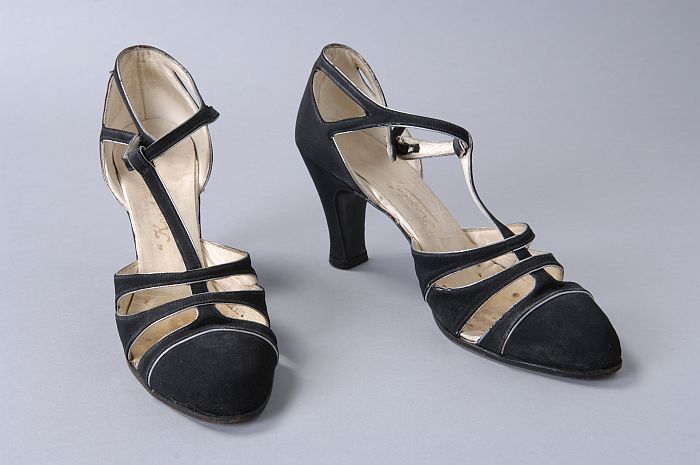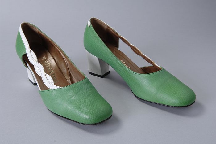 Pumps van wit en zwart leer, witte gedeelte gevlocht...