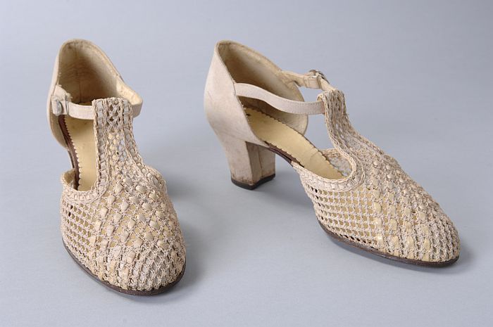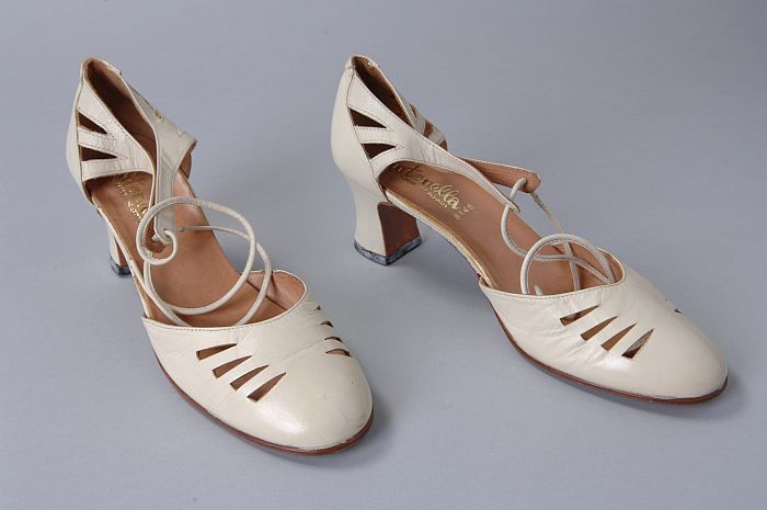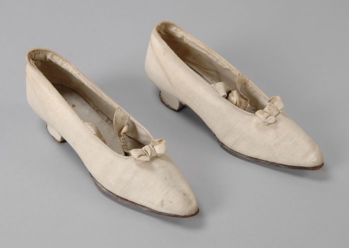 Roomwitte ribszijden pumps met waaiervormige decorat...