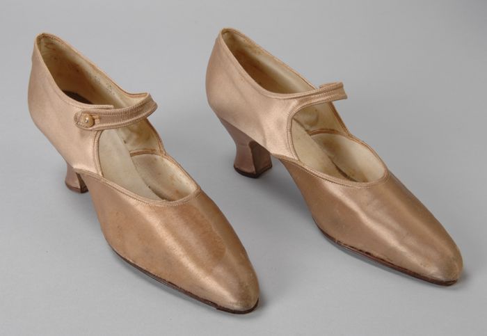 Pumps van hardgeel satijn met klein hakje en lange p...