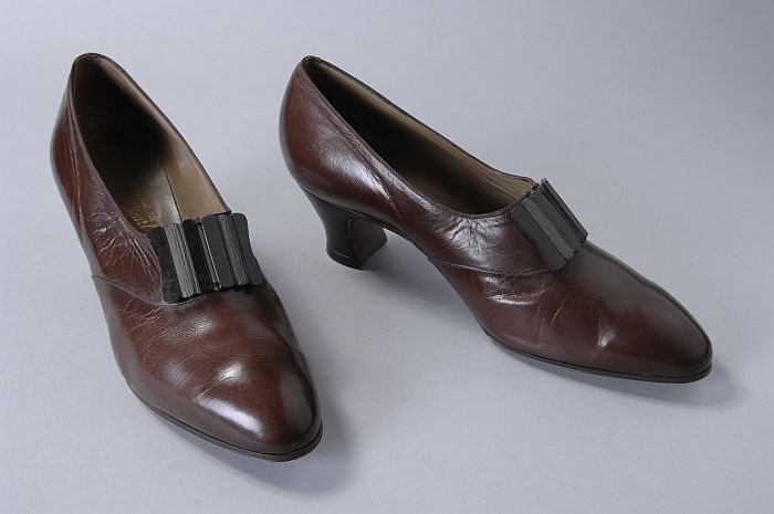 Bruine lakleren pumps met opgeplakte tong van bruine...